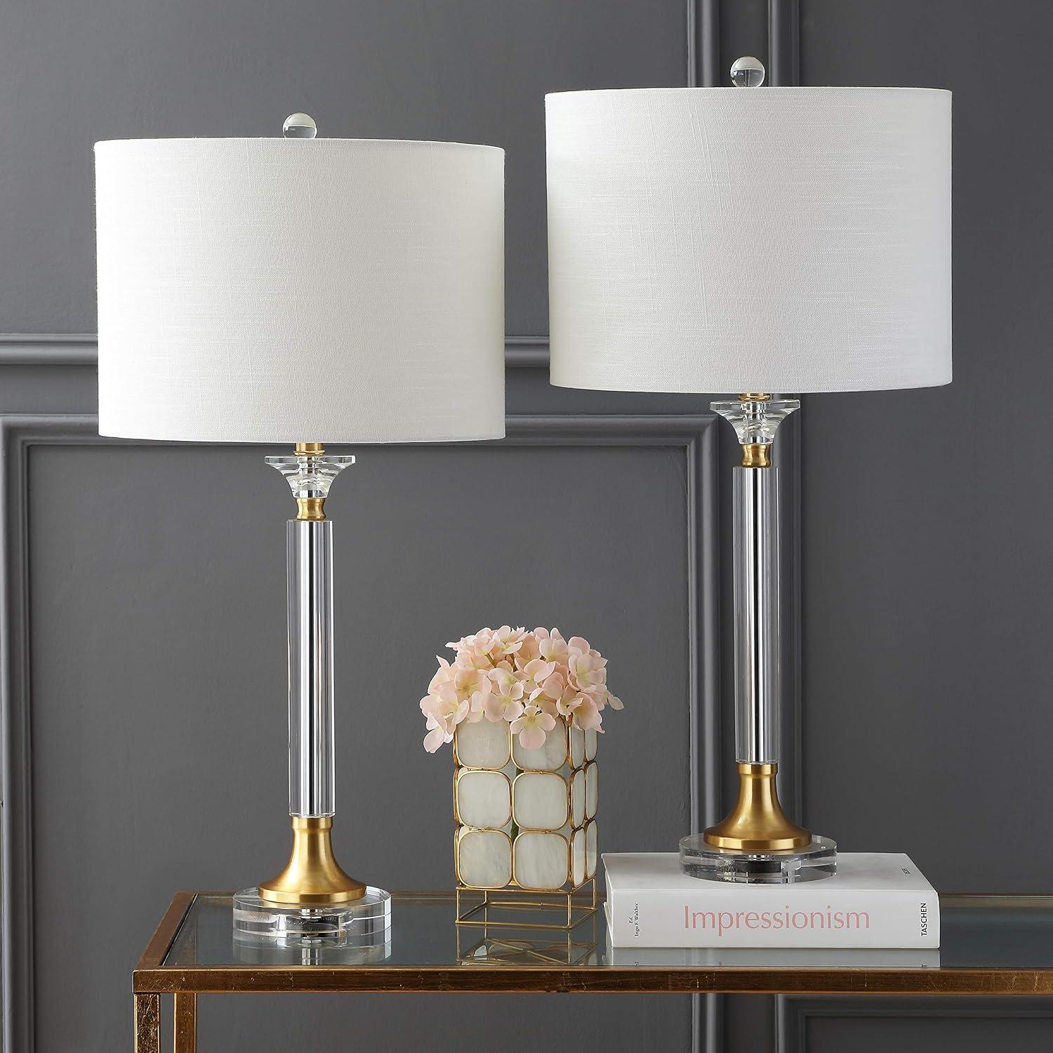 - Get up to 50% off on JONATHAN Y JYL1033A Duncan 19.5" Glass/Metal LED Table Lamp Glam Cottage Bedside Desk Nightstand Lamp for Bedroom Living Room Office College Bookcase LED Bulb Included, Clear/Brass Gold styles during our spring sale event.