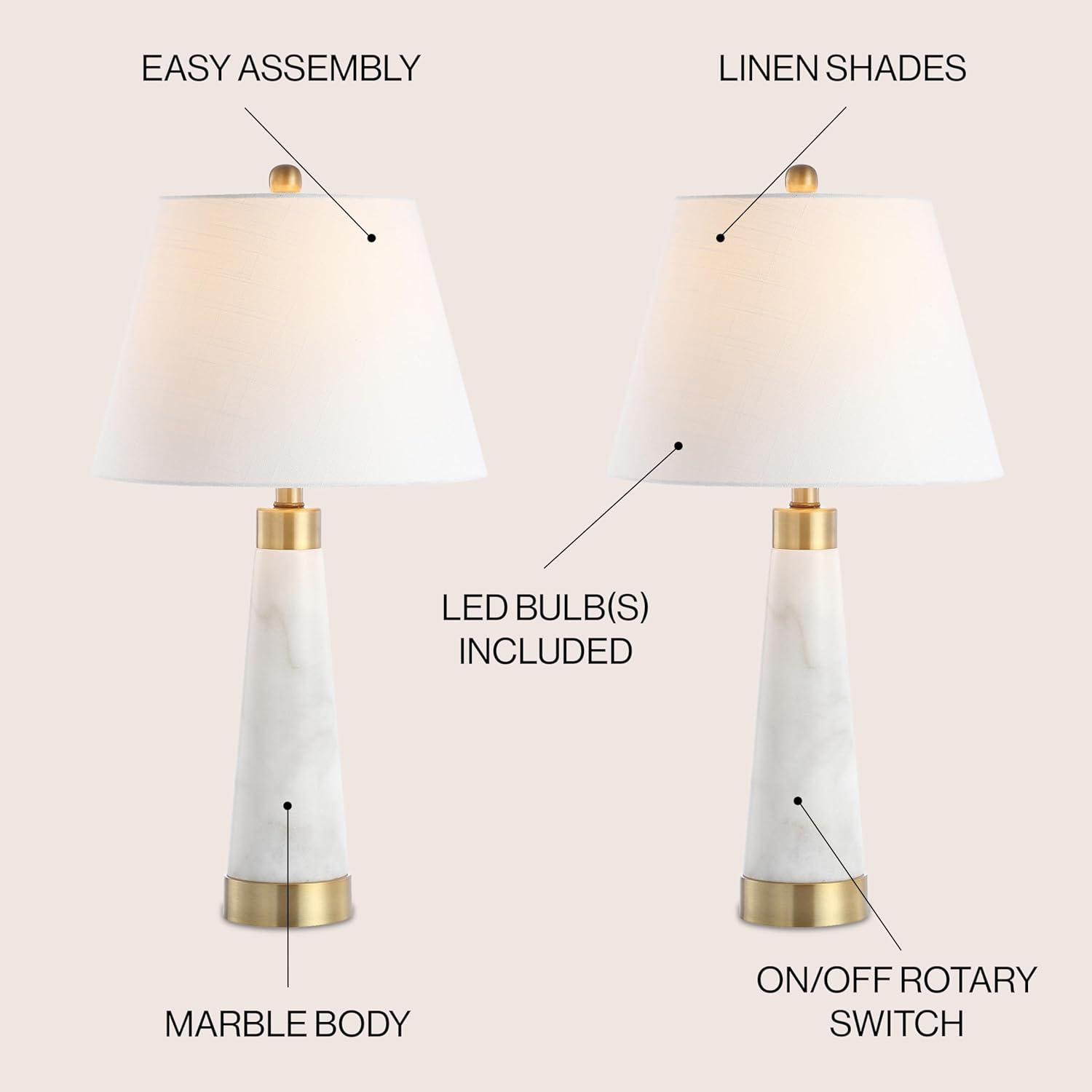JONATHAN Y JYL1043A Alyssa 24.5″ Metal/Marble LED Table Lamp Contemporary Bedside Desk Nightstand Lamp for Bedroom Living Room Office College Bookcase LED Bulb Included, Brass Gold/White(Black)