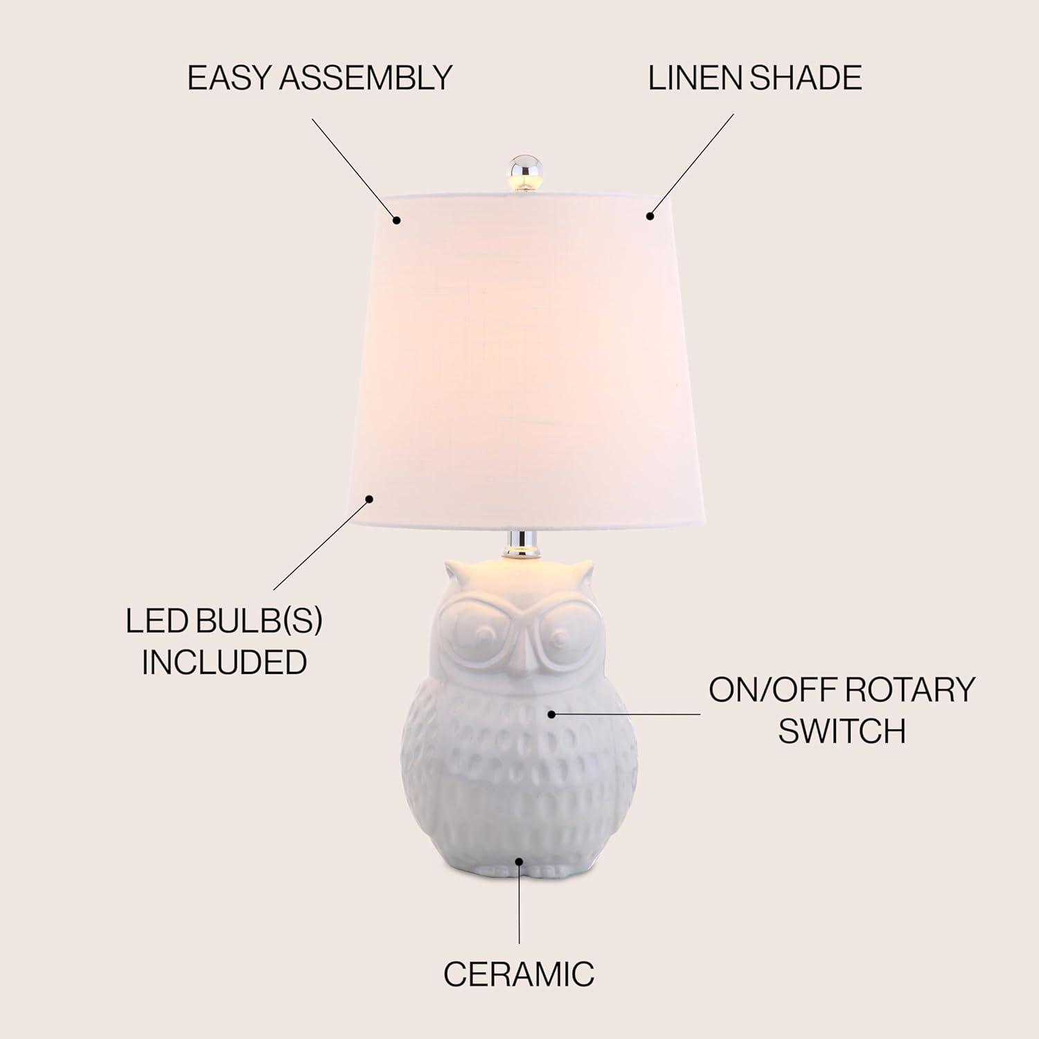 JONATHAN Y JYL1026A Hoot 20.5″ Ceramic Mini LED Table Lamp, Cottage, Transitional, Modern, Elegant, Office, Living Room, Family Room, Dining Room, Bedroom, Hallway, Foyer, White Owl