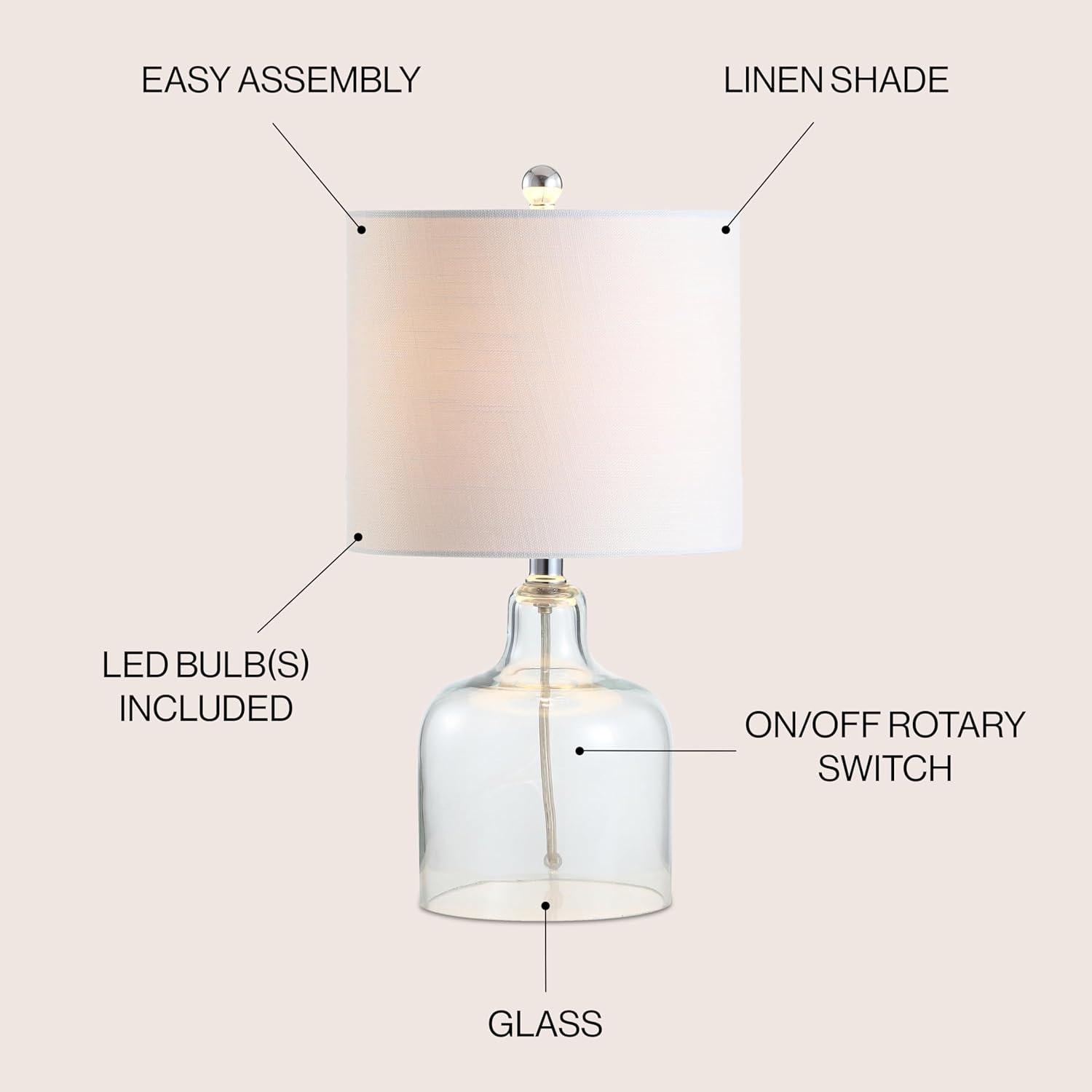 JONATHAN Y JYL1028A Anya 20.5″ Mini Glass LED Table Lamp, Transitional, Glam, Midcentury, Modern, Elegant, Office, Living Room, Family Room, Dining Room, Bedroom, Hallway, Foyer, Gray(Clear)
