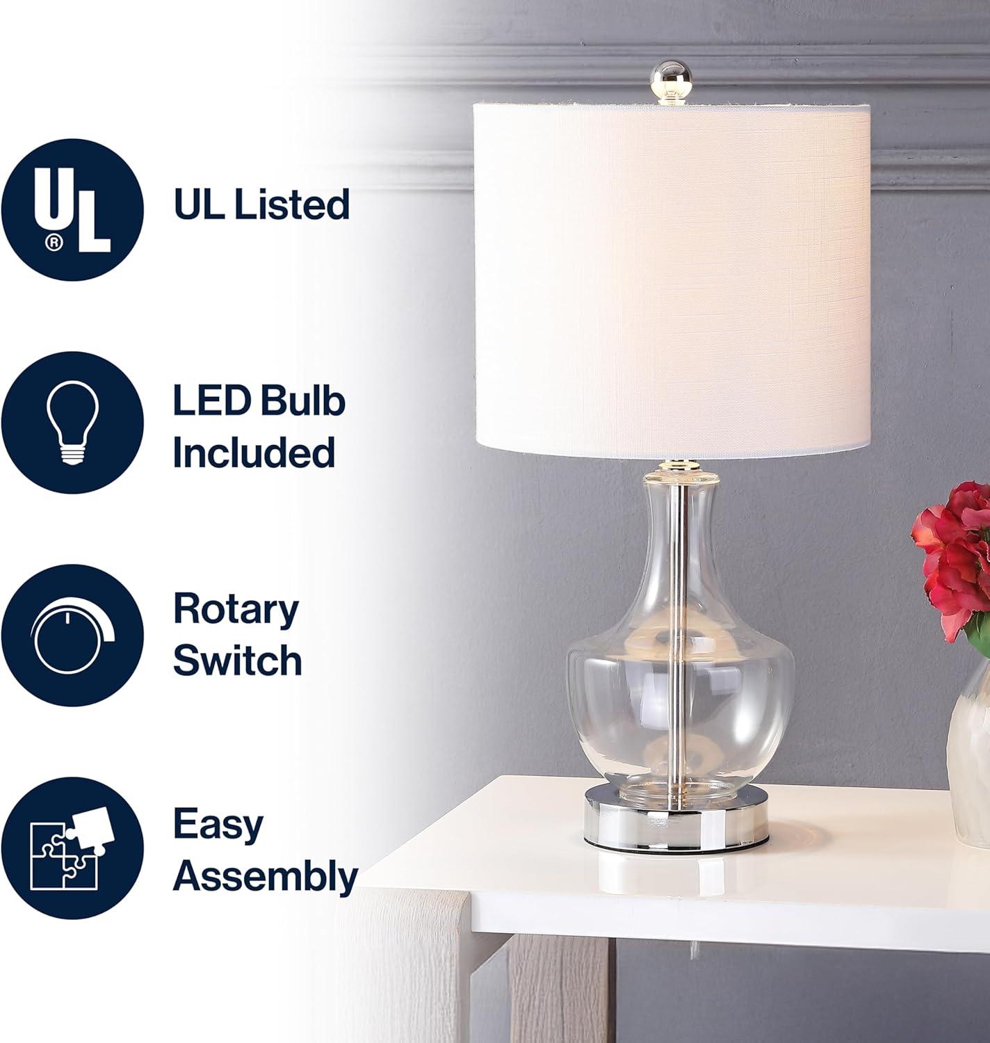 JONATHAN Y JYL1029B Colette 20″ Mini Glass LED Table Lamp, Transitional, Glam, Global, Modern, Elegant, Office, Living Room, Family Room, Dining Room, Bedroom, Hallway, Foyer, Silver(Clear)