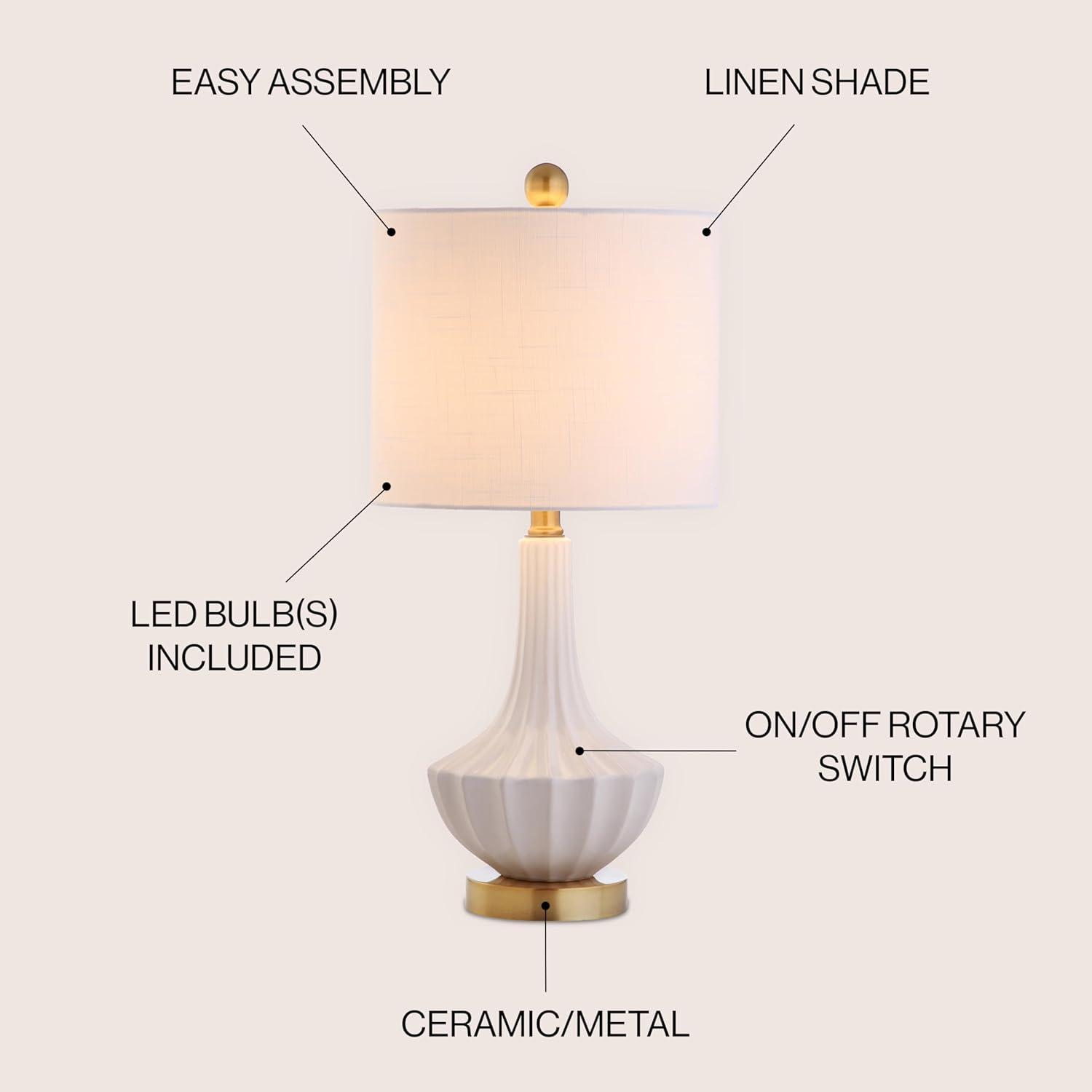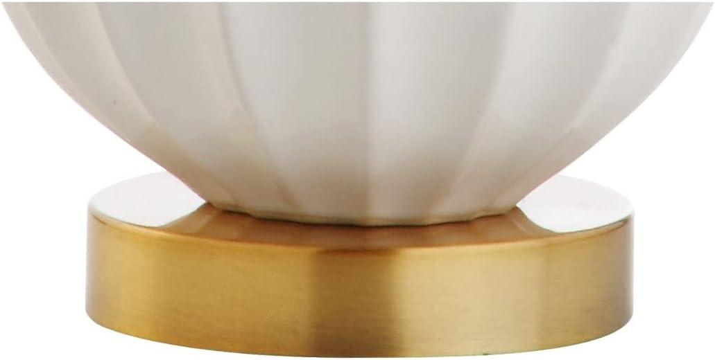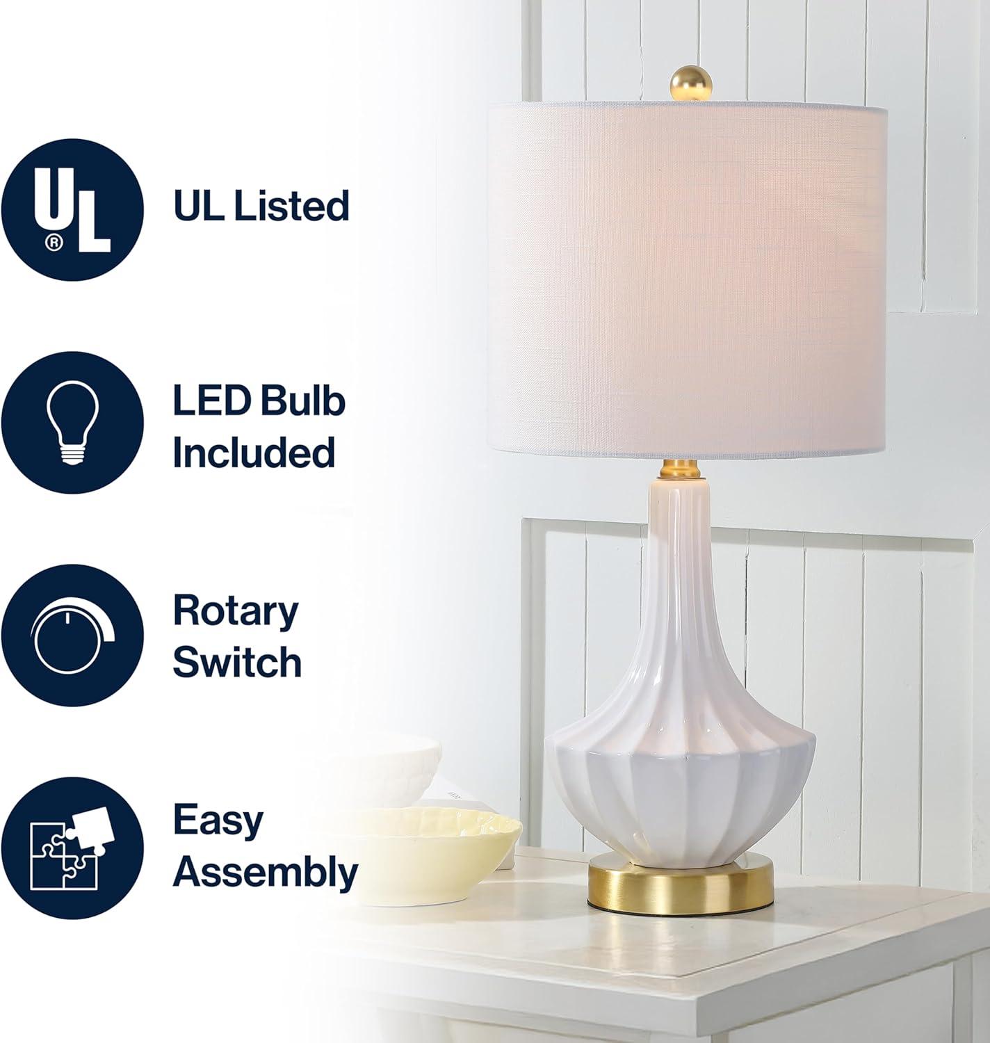 JONATHAN Y JYL1030A Parker 21.5″ Ceramic Mini LED Table Lamp, Modern, Contemporary, Elegant, Office, Living Room, Family Room, Dining Room, Bedroom, Hallway, Foyer, Brass/White