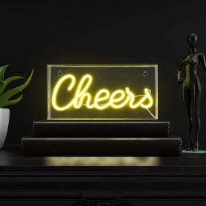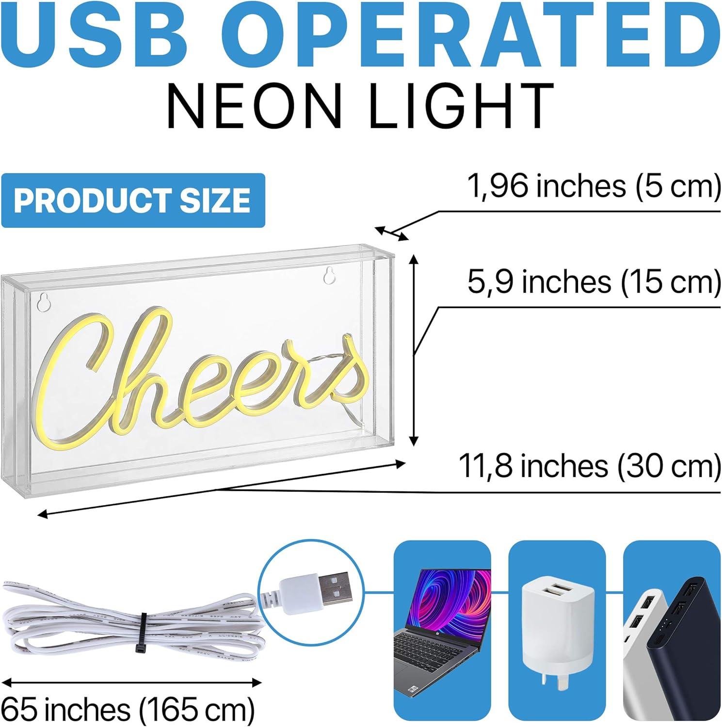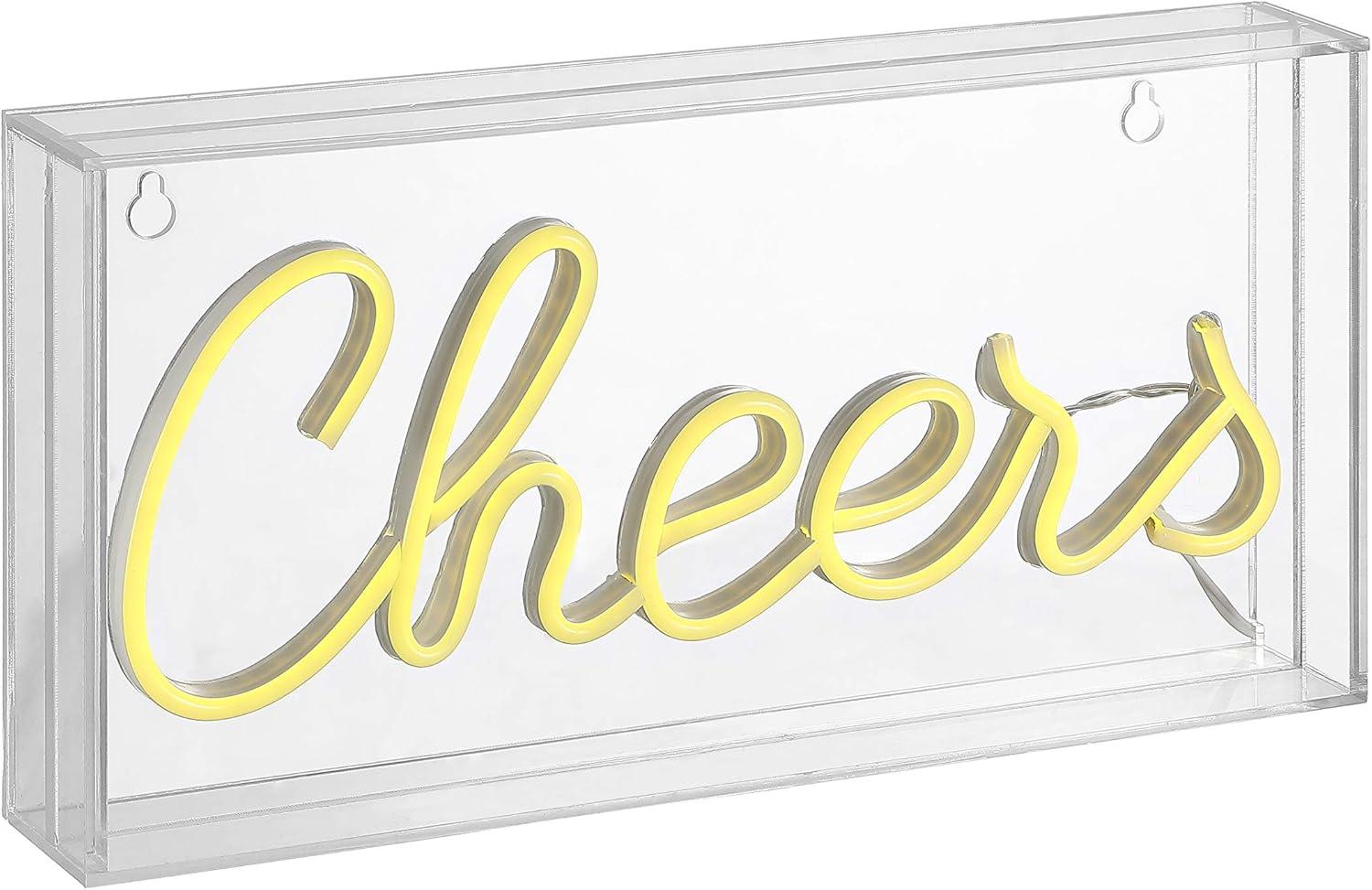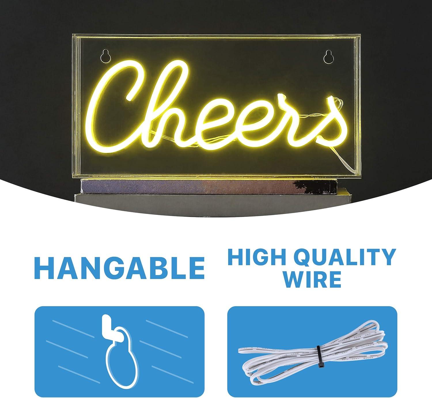JONATHAN Y NEN1000A Cheers 11.8″ Contemporary Glam Acrylic Box USB Operated LED Neon Light, Yellow Plug in Wall Light for Bedroom Wall Décor, Kids Bedroom, Party Supplier