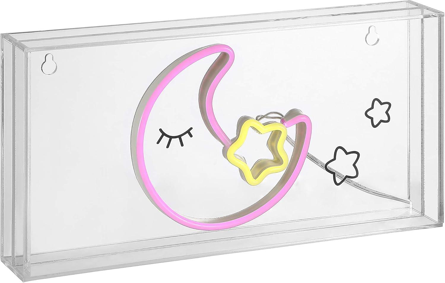 JONATHAN Y NEN1003A Moon 11.8″ Contemporary Glam Acrylic Box USB Operated LED Neon Light, Pink/Yellow Plug in Wall Light for Bedroom Wall Décor, Kids Bedroom, Party Supplier