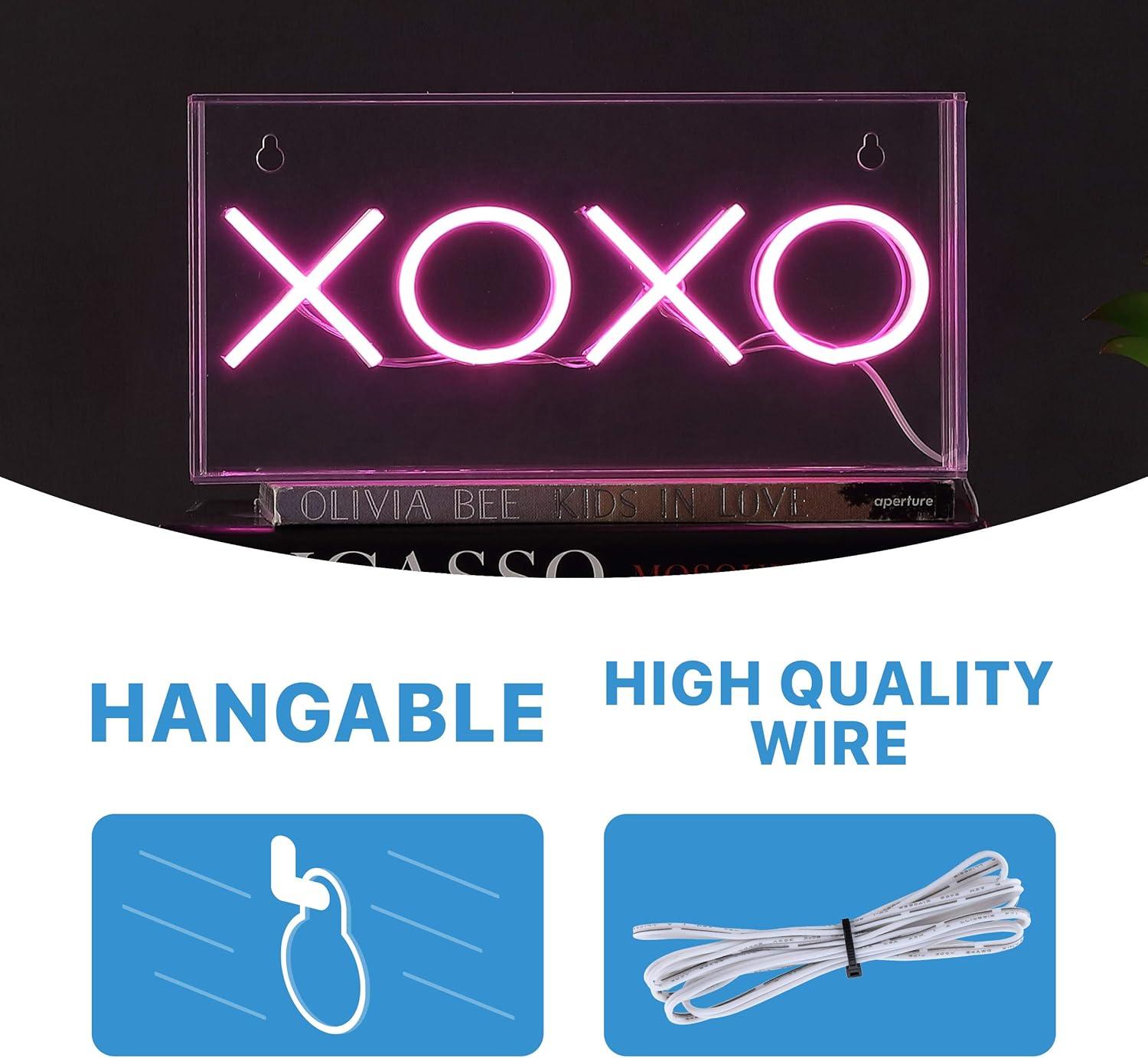JONATHAN Y NEN1005A XOXO 11.75″ Contemporary Glam Acrylic Box USB Operated LED Neon Light, Pink Plug in Wall Light for Bedroom Wall Décor, Kids Bedroom, Party Supplier