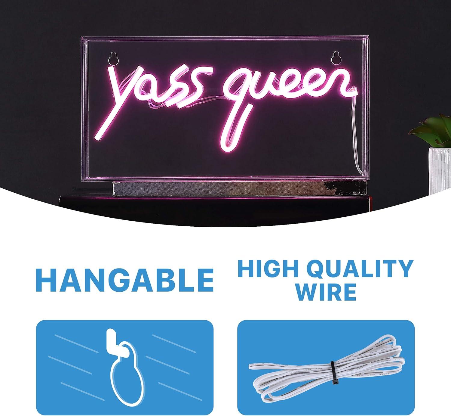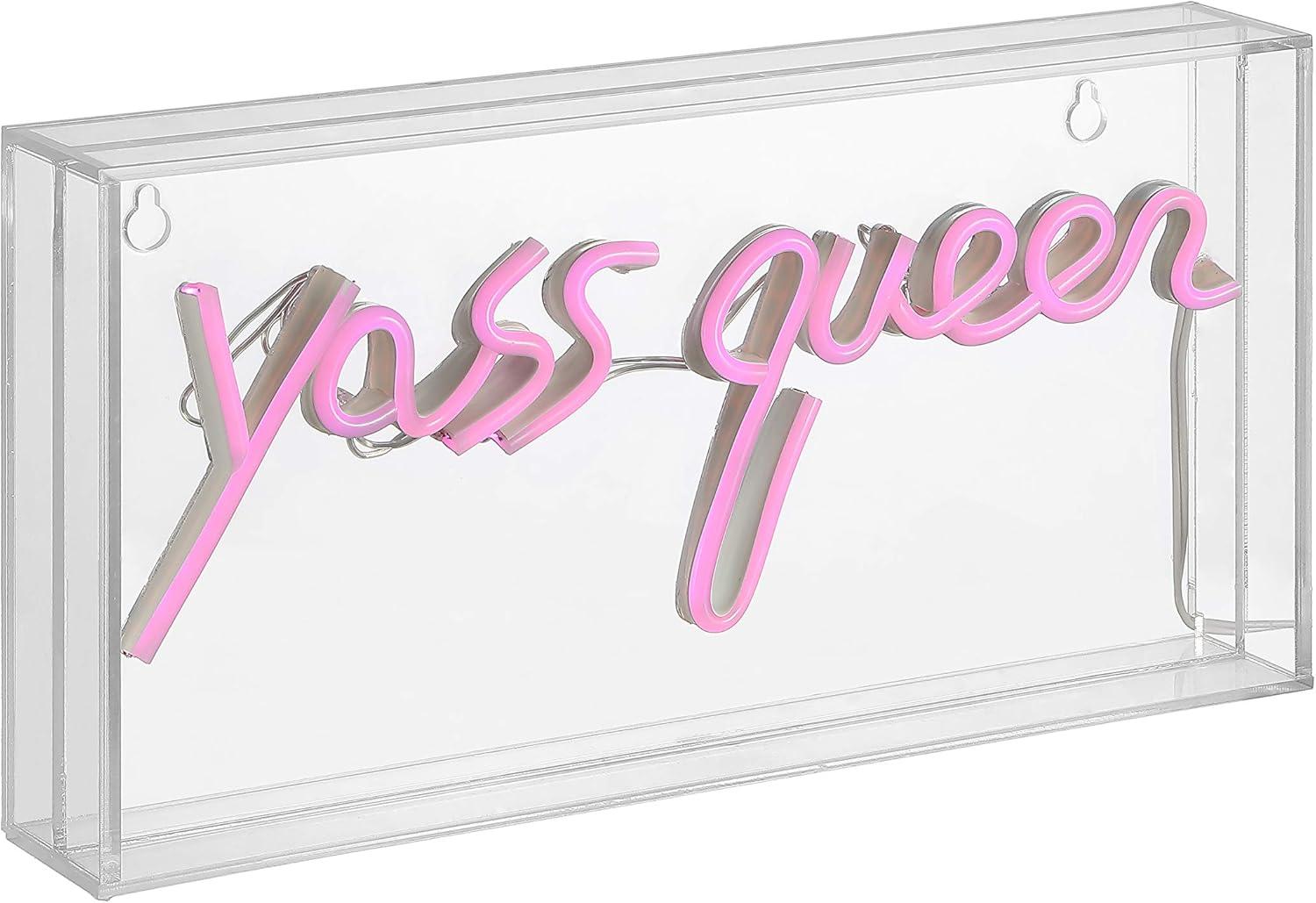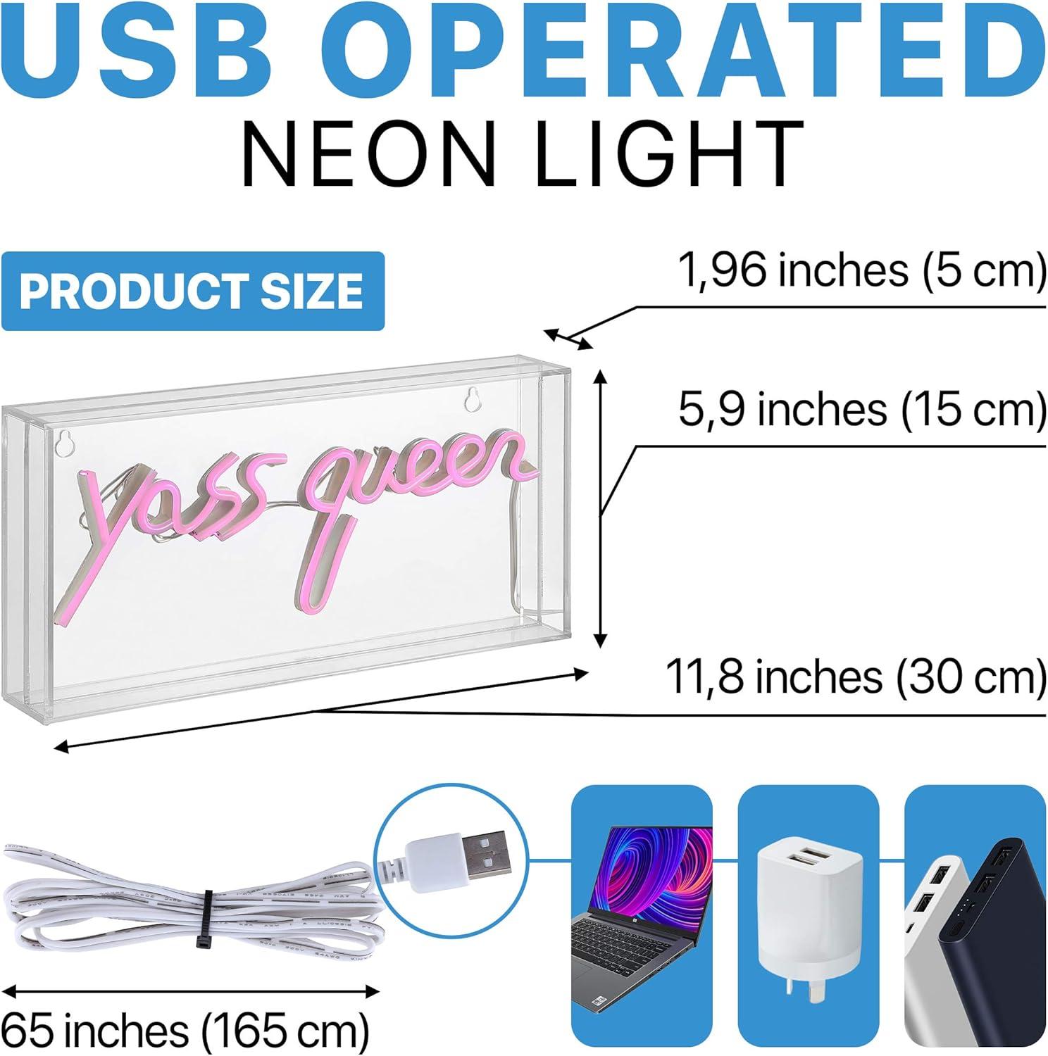 JONATHAN Y NEN1006A Yass Queen 11.8″ Contemporary Glam Acrylic Box USB Operated LED Neon Light, Pink Plug in Wall Light for Bedroom Wall Décor, Kids Bedroom, Party Supplier
