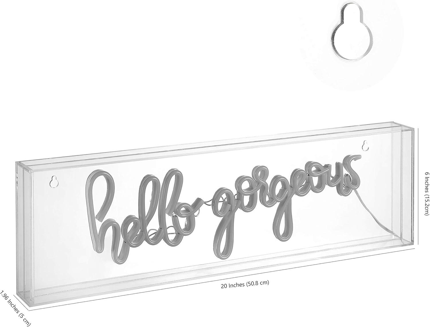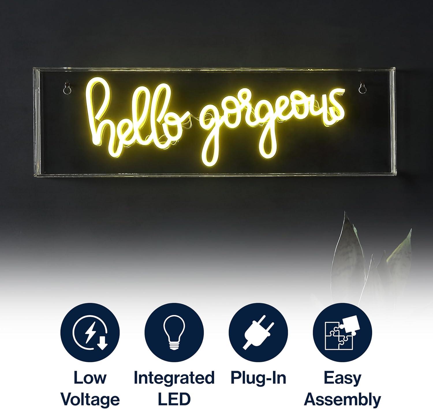 JONATHAN Y NEN1007A Hello Gorgerous 20″ Contemporary Glam Acrylic Box USB Operated LED Neon Light, Yellow Plug in Wall Light for Bedroom Wall Décor, Kids Bedroom, Party Supplier