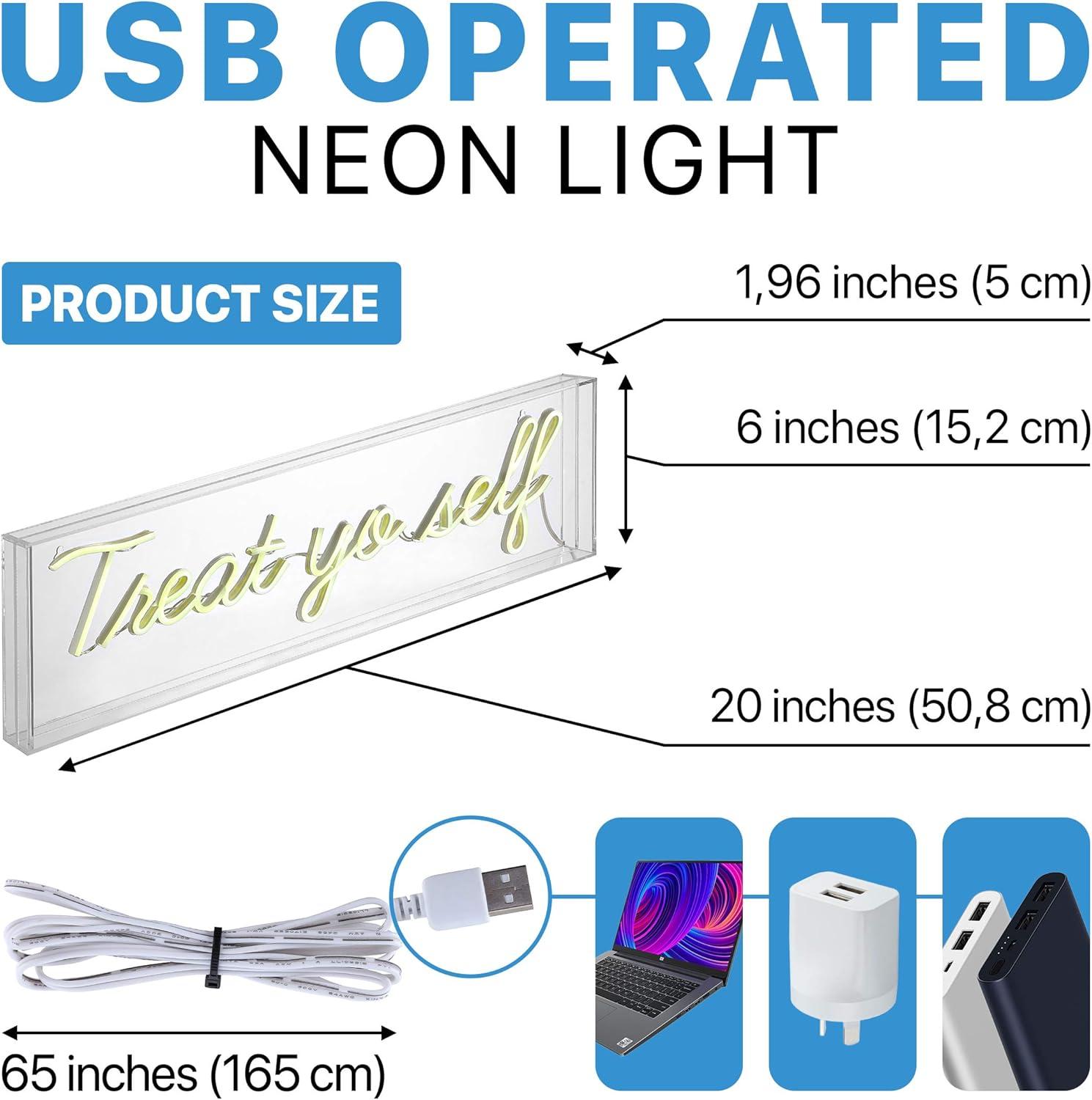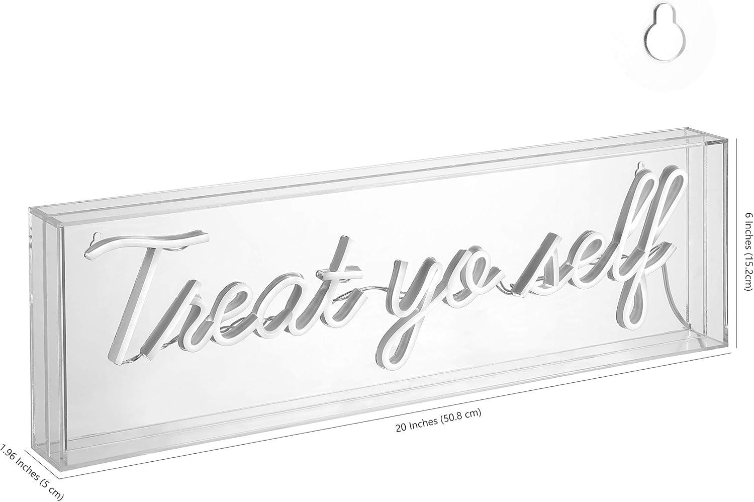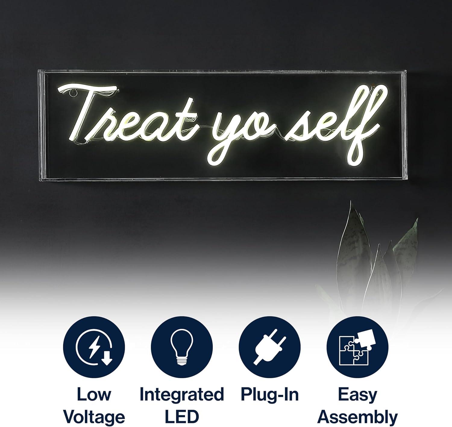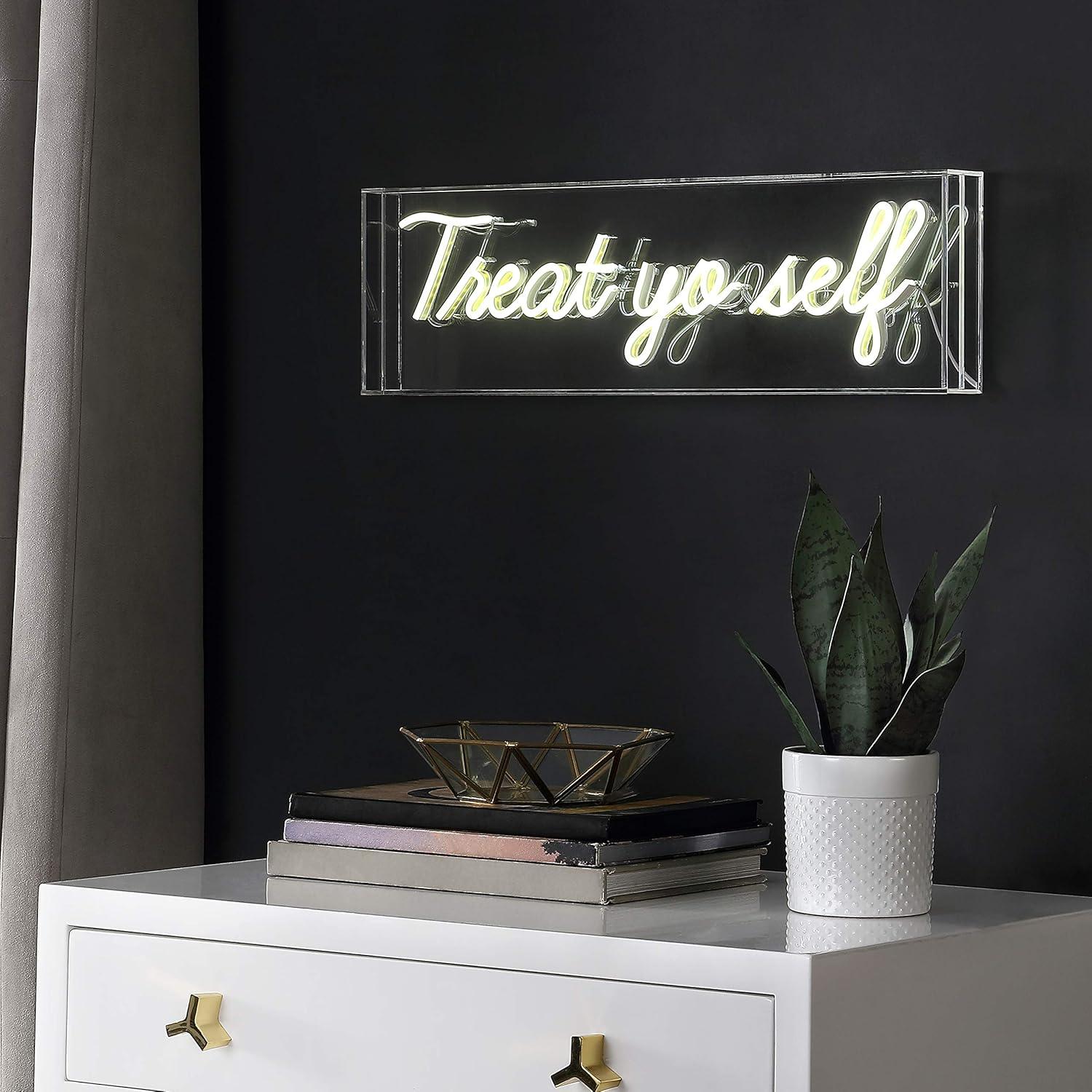 JONATHAN Y NEN1008A Treat Yo Self 20″ Contemporary Glam Acrylic Box USB Operated LED Neon Light, Yellow Plug in Wall Light for Bedroom Wall Décor, Kids Bedroom, Party Supplier