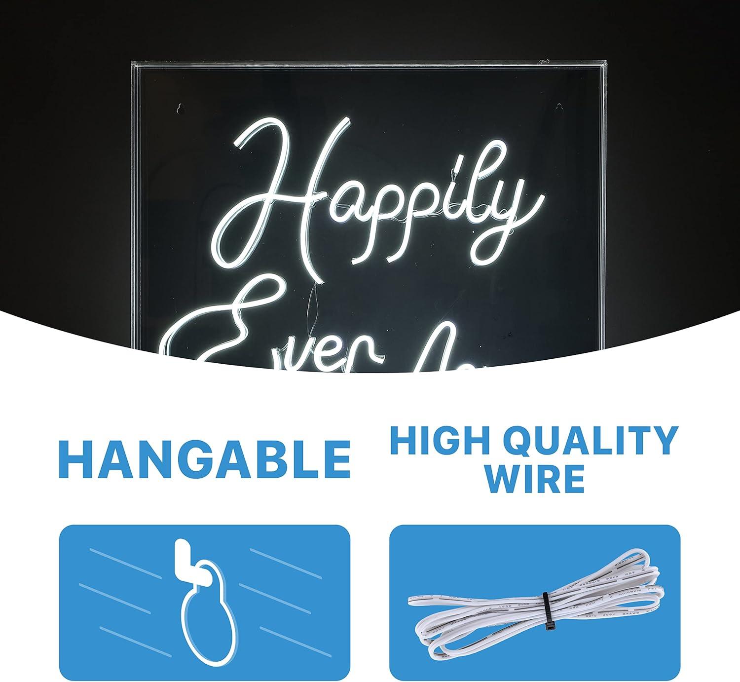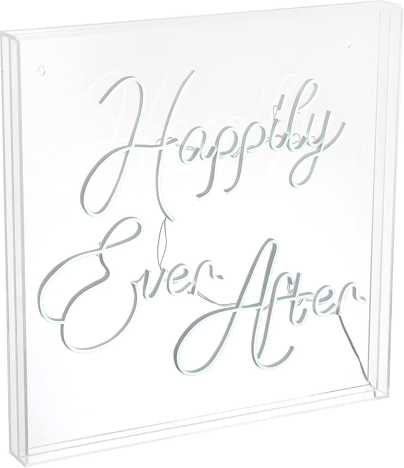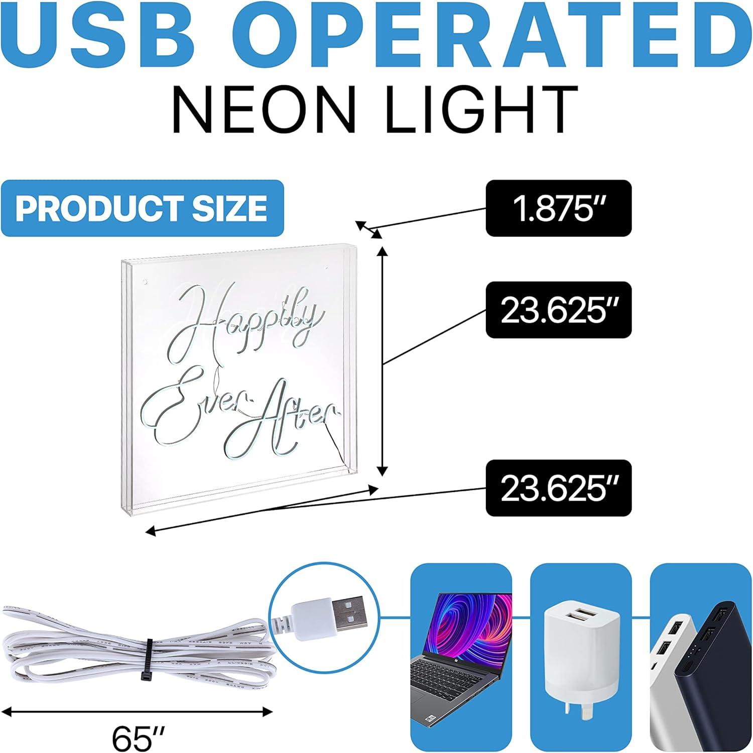 JONATHAN Y NEN1009A Happily Ever After 23.63″ Square Contemporary Glam Acrylic Box USB Operated LED Neon Light, White