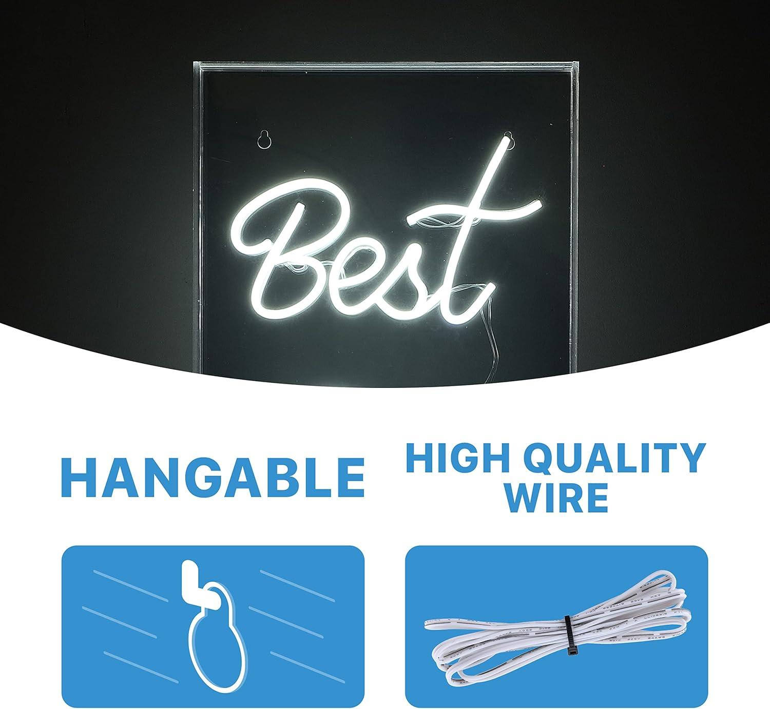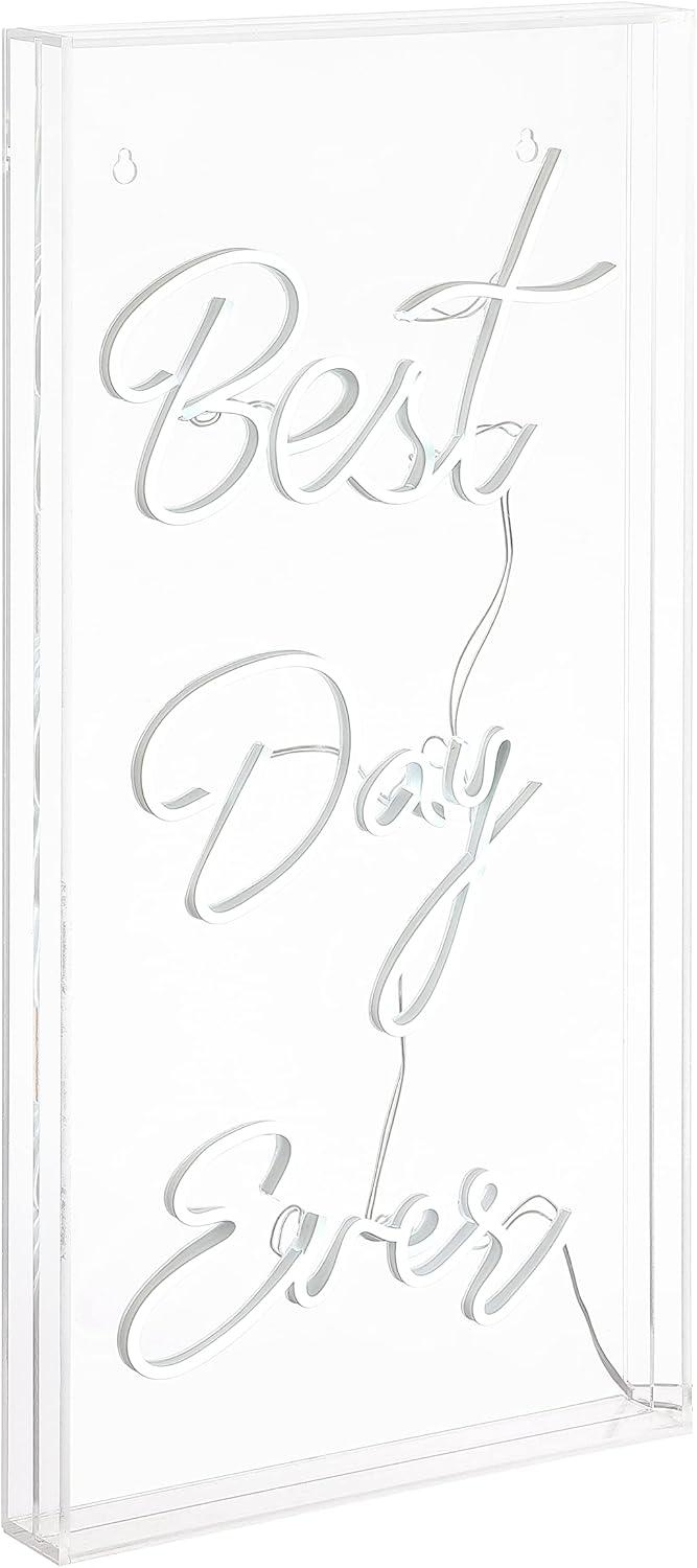 JONATHAN Y NEN1010A Best Day Ever 11.75″ X 23.63″ Contemporary Glam Acrylic Box USB Operated LED Neon Light, White