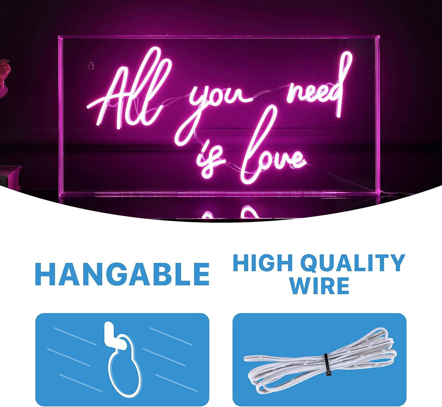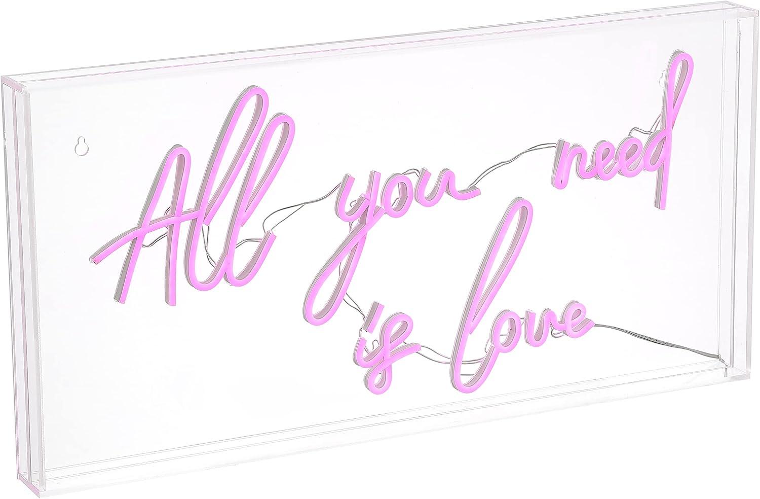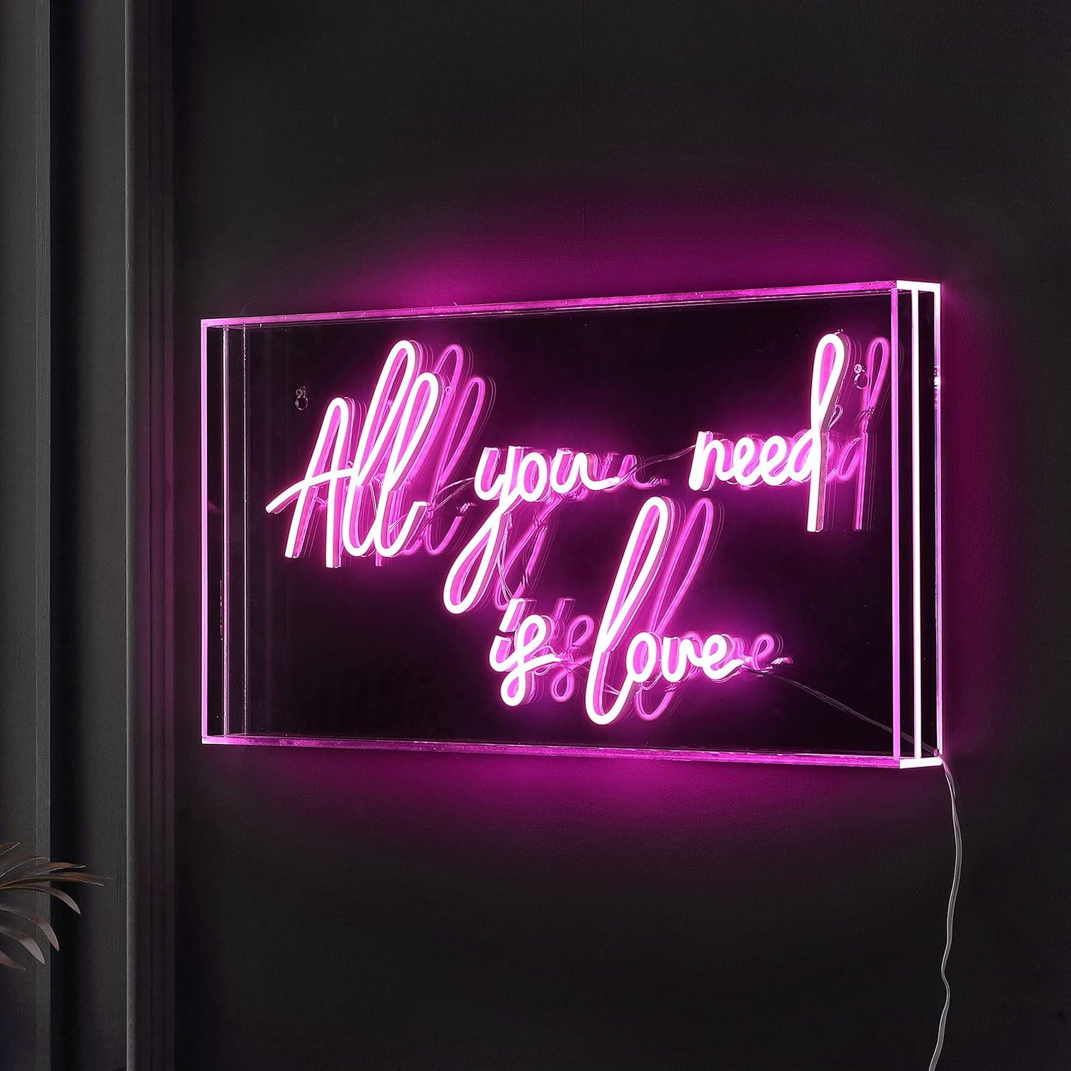 JONATHAN Y NEN1011A All You Need is Love 23.63″ X 11.75″ Contemporary Glam Acrylic Box USB Operated LED Neon Light, Pink