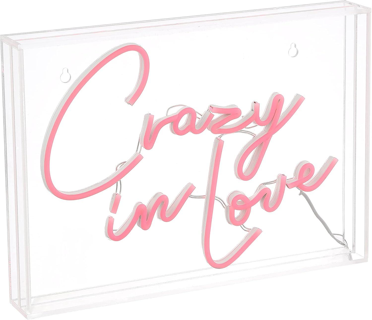 JONATHAN Y NEN1012A Crazy in Love 14″ X 10″ Contemporary Glam Acrylic Box USB Operated LED Neon Light, Red