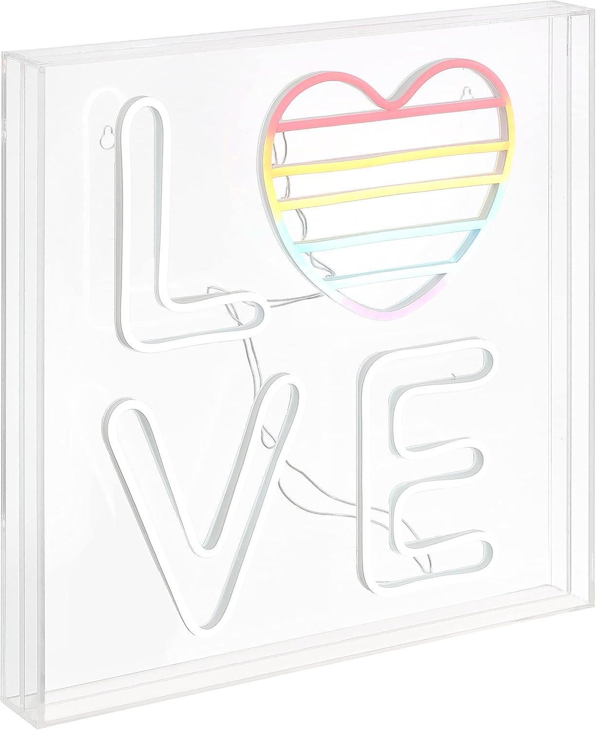 JONATHAN Y NEN1014A Love 15″ Square Contemporary Glam Acrylic Box USB Operated LED Neon Light, White/Rainbow