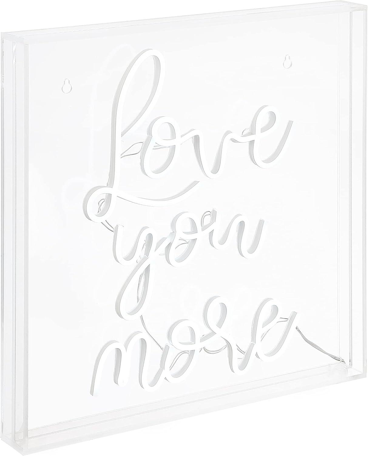 JONATHAN Y NEN1015A Love You More 15″ Square Contemporary Glam Acrylic Box USB Operated LED Neon Light, White