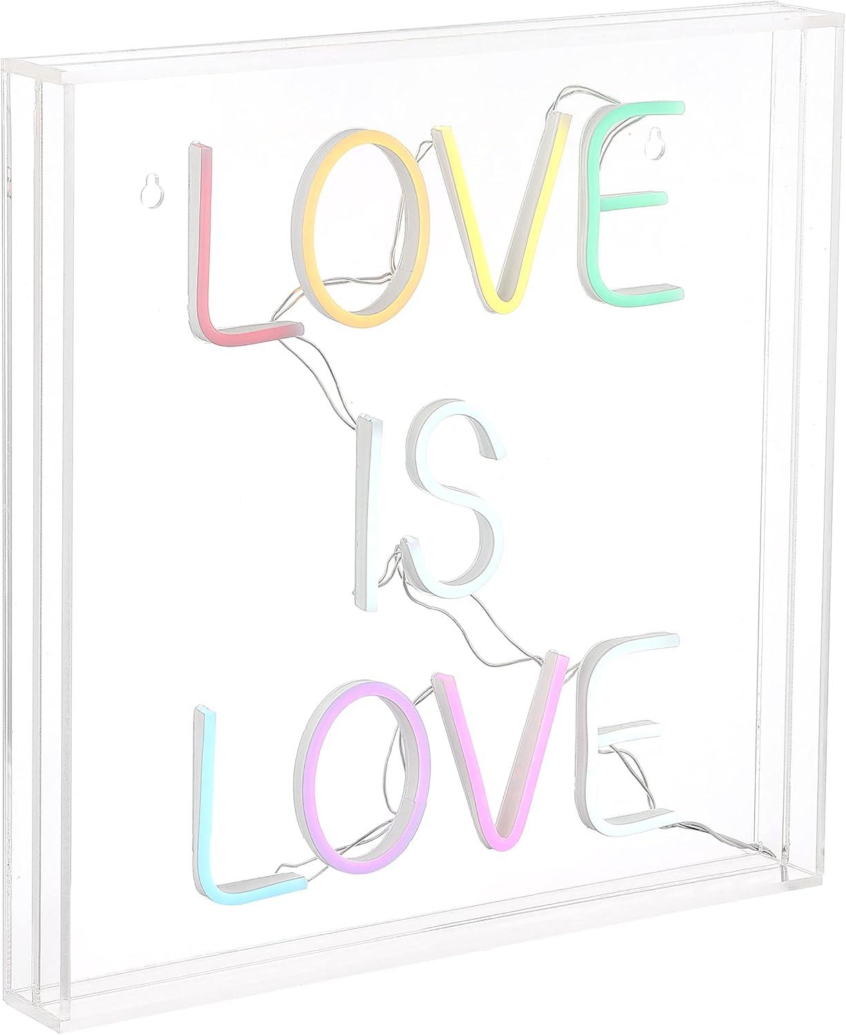 JONATHAN Y NEN1016A Love is Love 15″ Square Contemporary Glam Acrylic Box USB Operated LED Neon Light, Multi-Colored