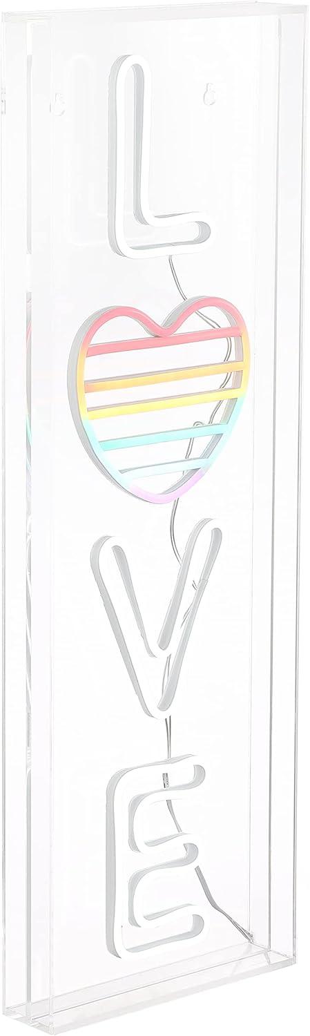 JONATHAN Y NEN1017A Love 8″ X 24″ Contemporary Glam Acrylic Box USB Operated LED Neon Light, White/Rainbow
