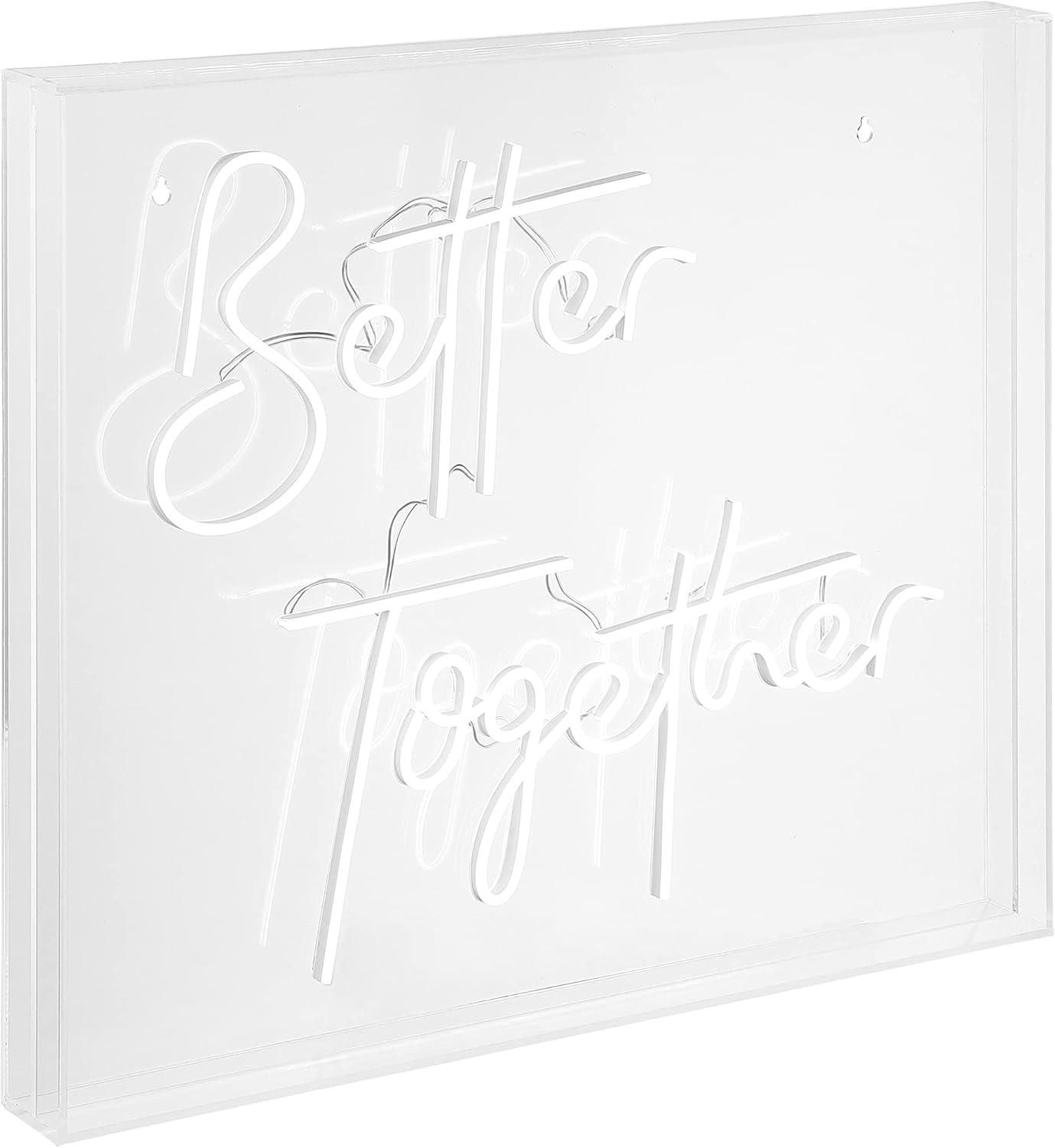 JONATHAN Y NEN1018A Better Together 23.63″ X 20″ Contemporary Glam Acrylic Box USB Operated LED Neon Light, White