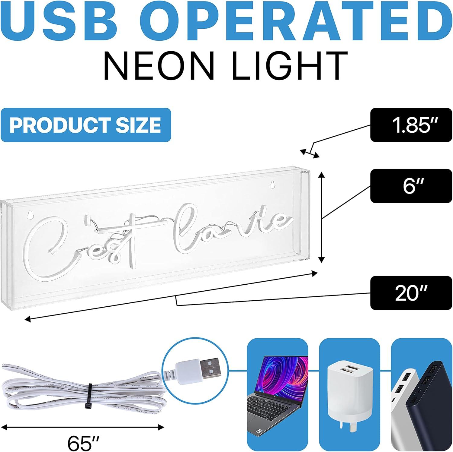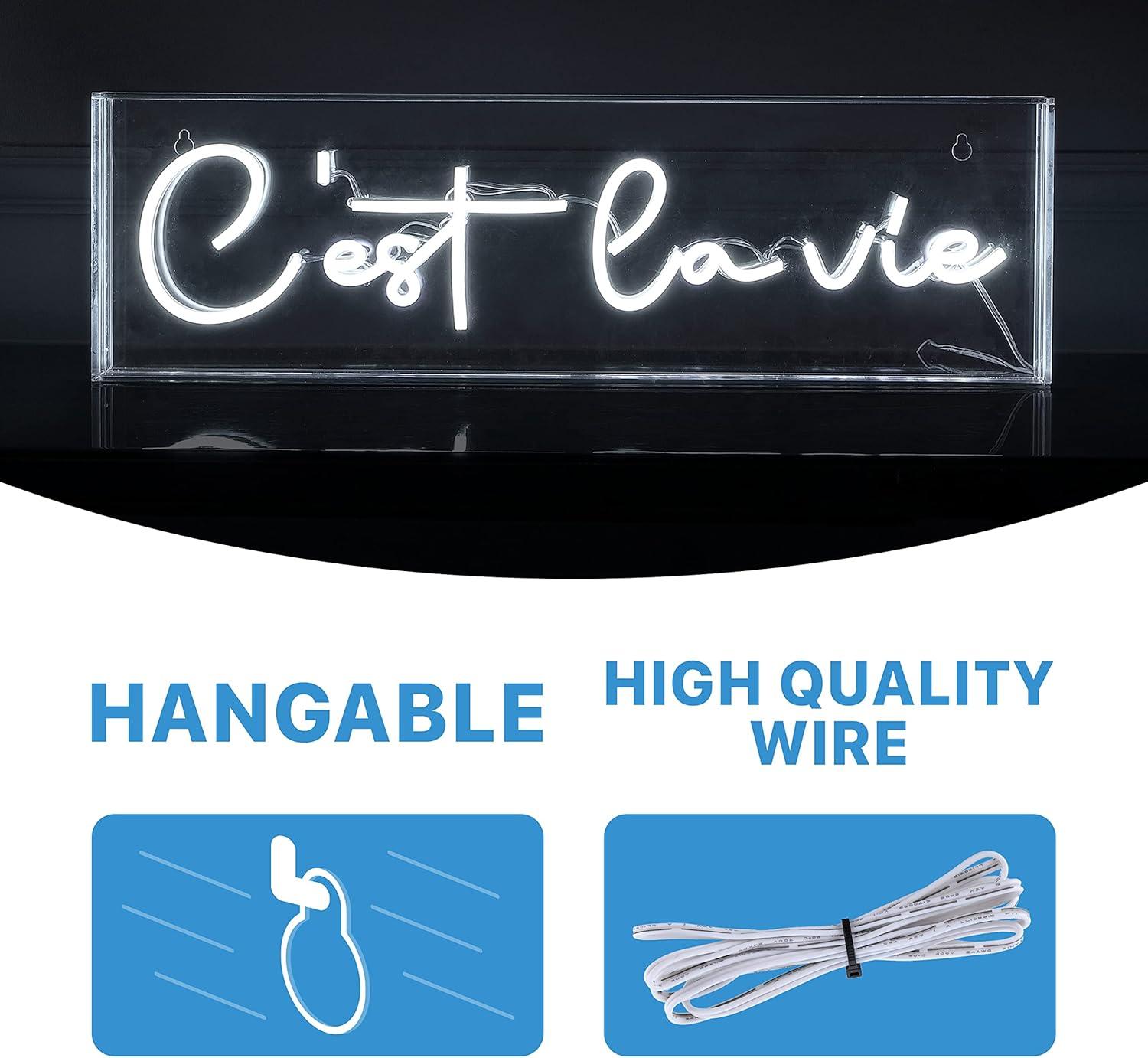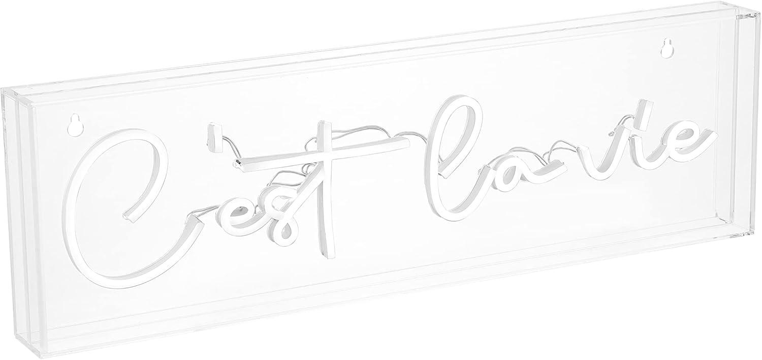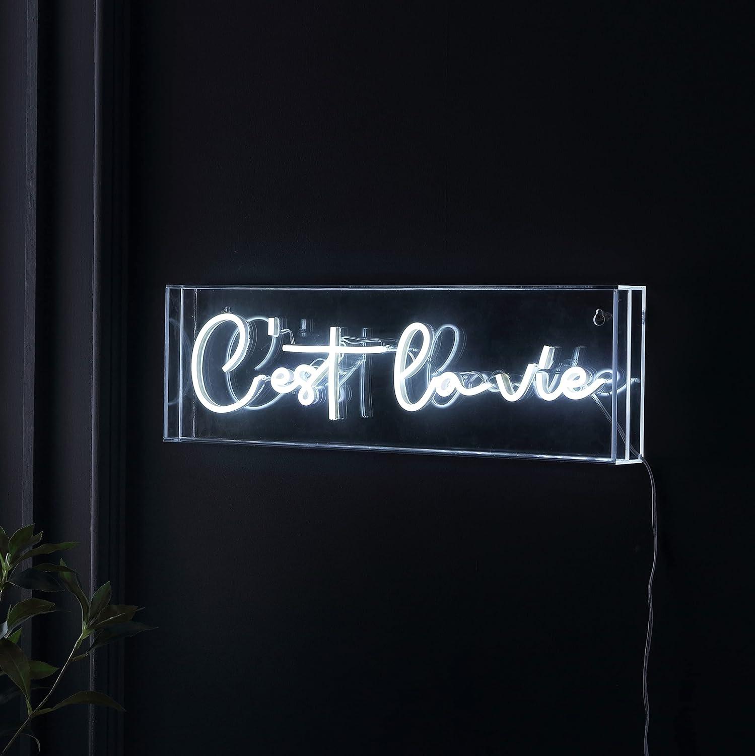 JONATHAN Y NEN1021A C’est La Vie 20″ X 6″ Contemporary Glam Acrylic Box USB Operated LED Neon Light, White