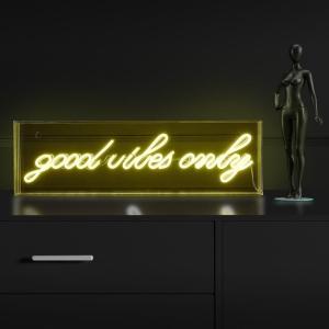 JONATHAN Y NEN1019A Good Vibes Only 20″ X 6″ Contemporary Glam Acrylic Box USB Operated LED Neon Light, Yellow
