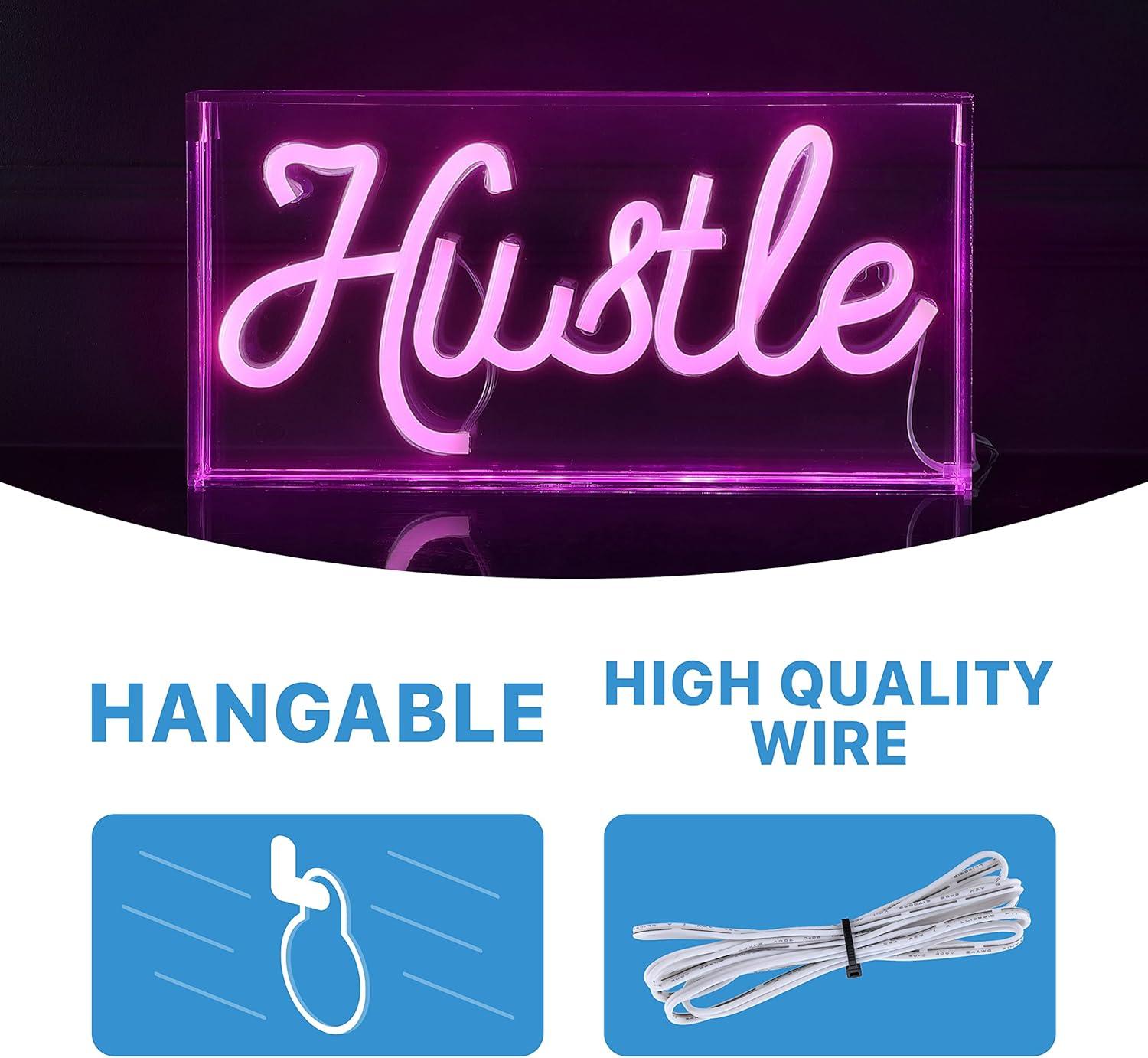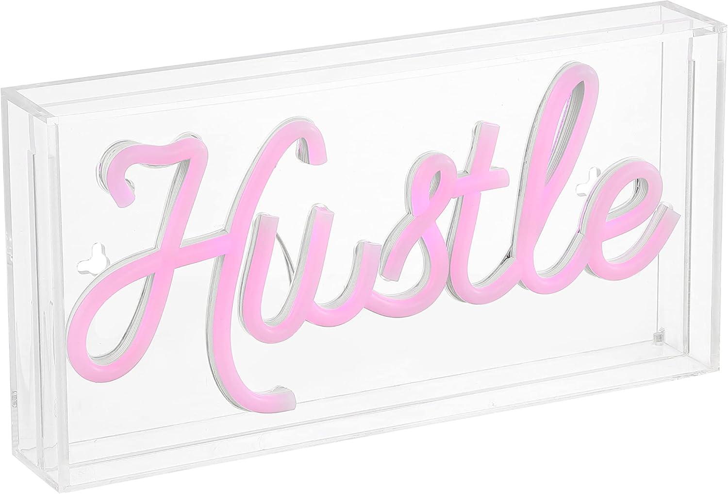 JONATHAN Y NEN1022A Hustle 11.88″ X 5.88″ Contemporary Glam Acrylic Box USB Operated LED Neon Light, Pink