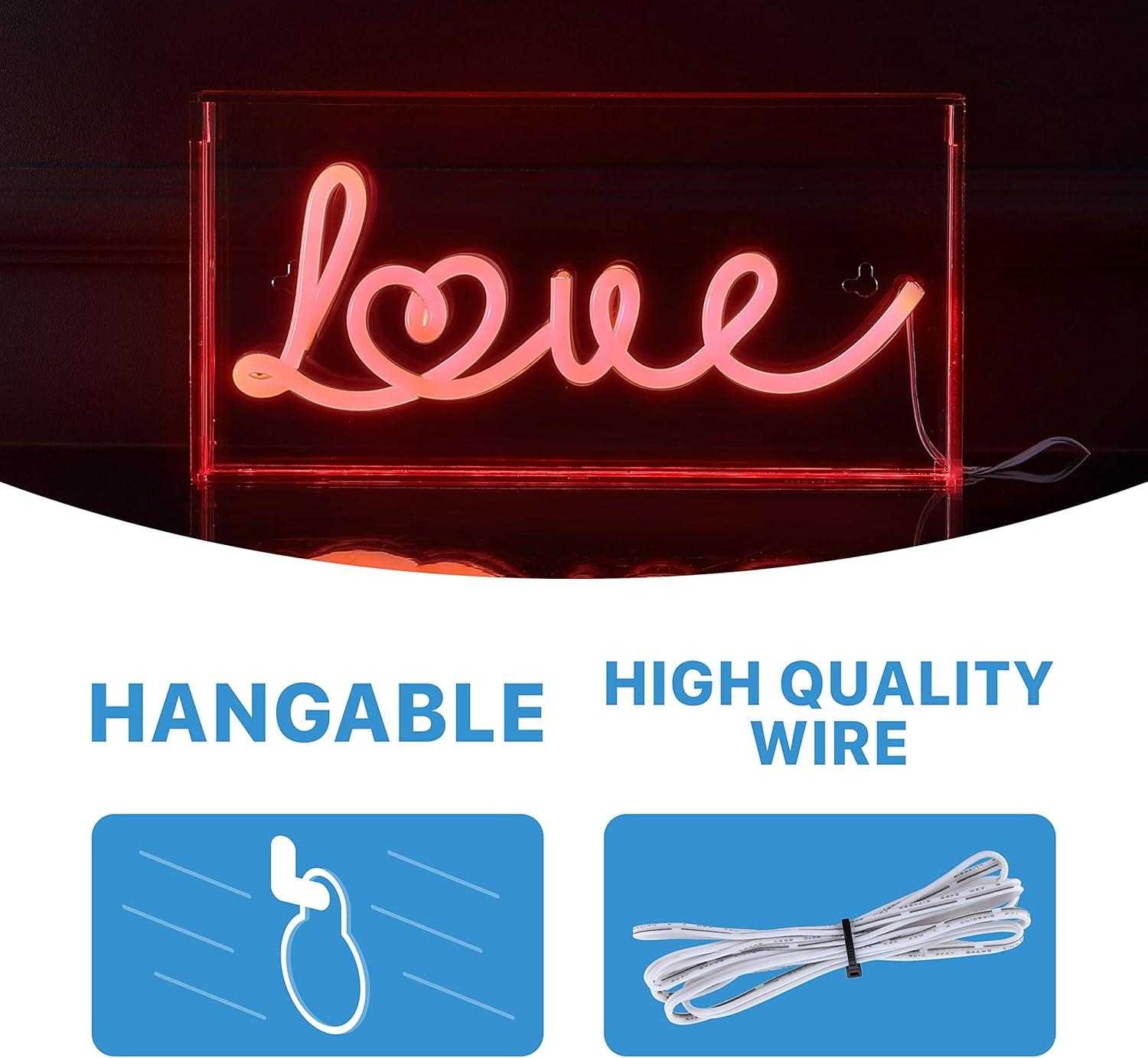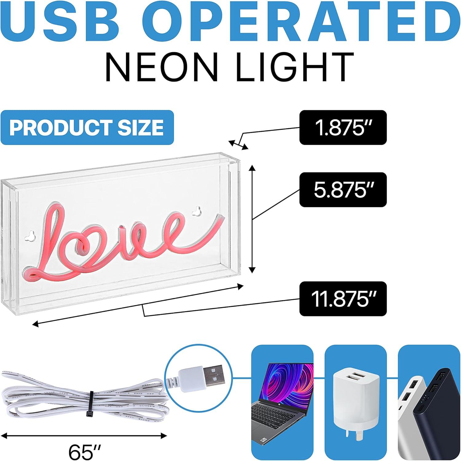 JONATHAN Y NEN1023A Love 11.88″ X 5.88″ Contemporary Glam Acrylic Box USB Operated LED Neon Light, Red