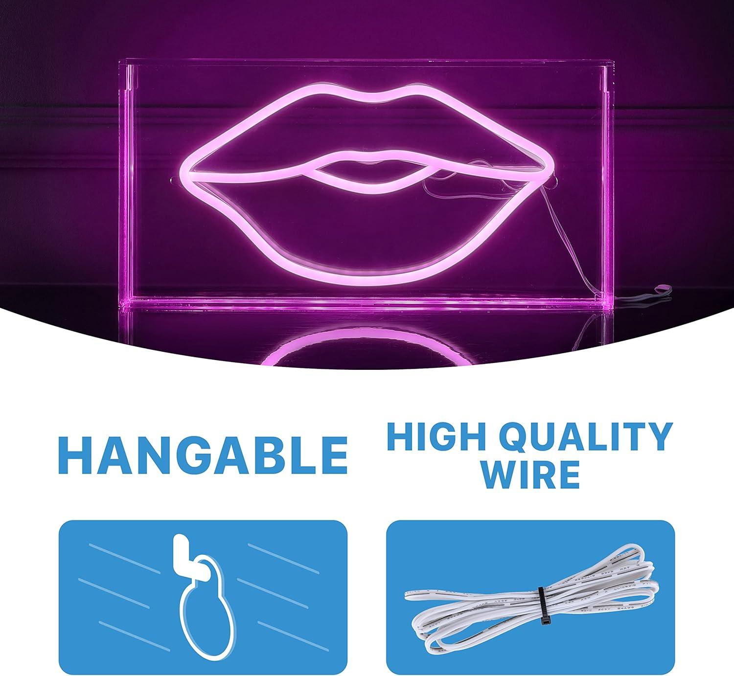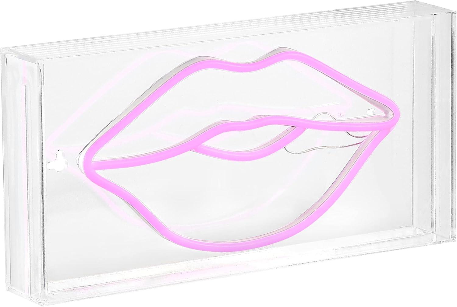 JONATHAN Y NEN1024A Lips 11.88″ X 5.88″ Contemporary Glam Acrylic Box USB Operated LED Neon Light, Pink