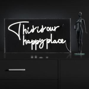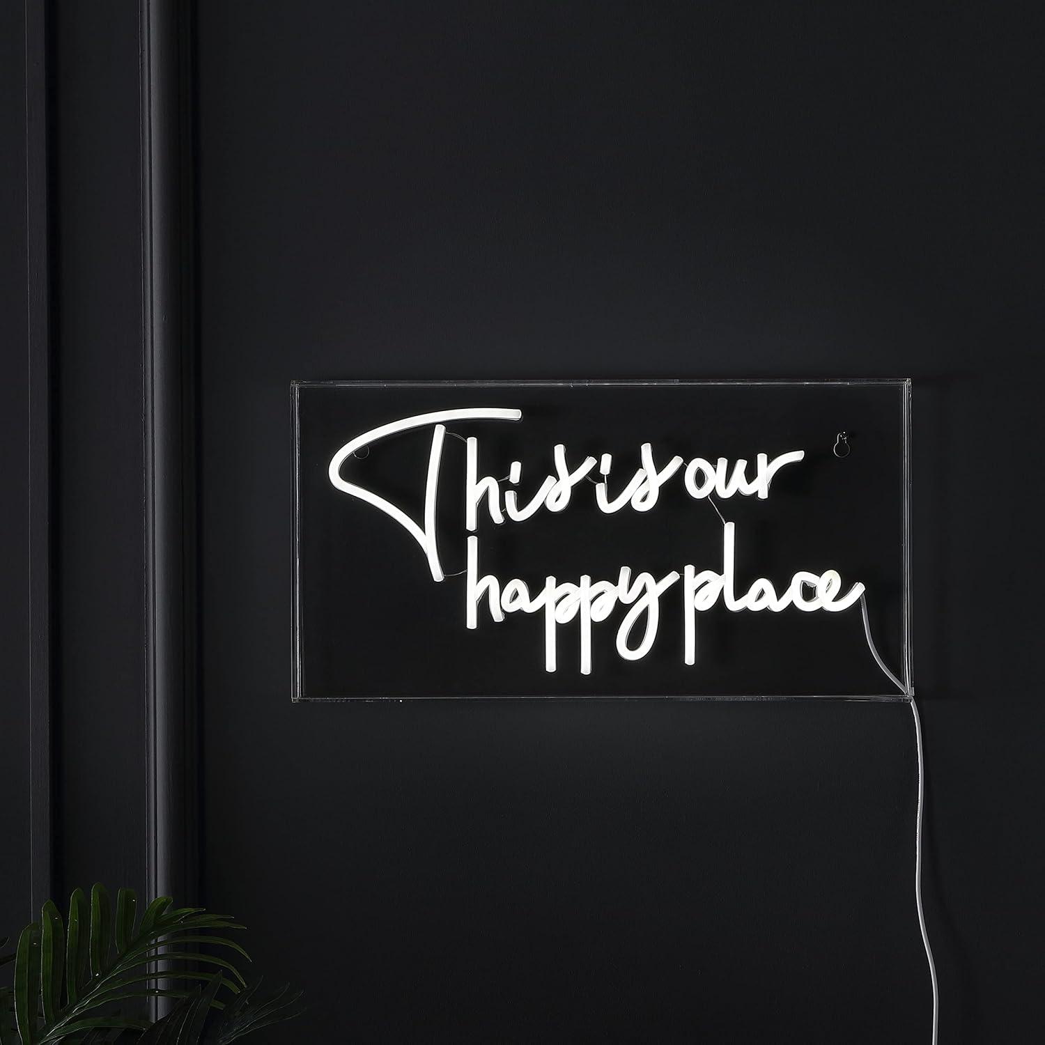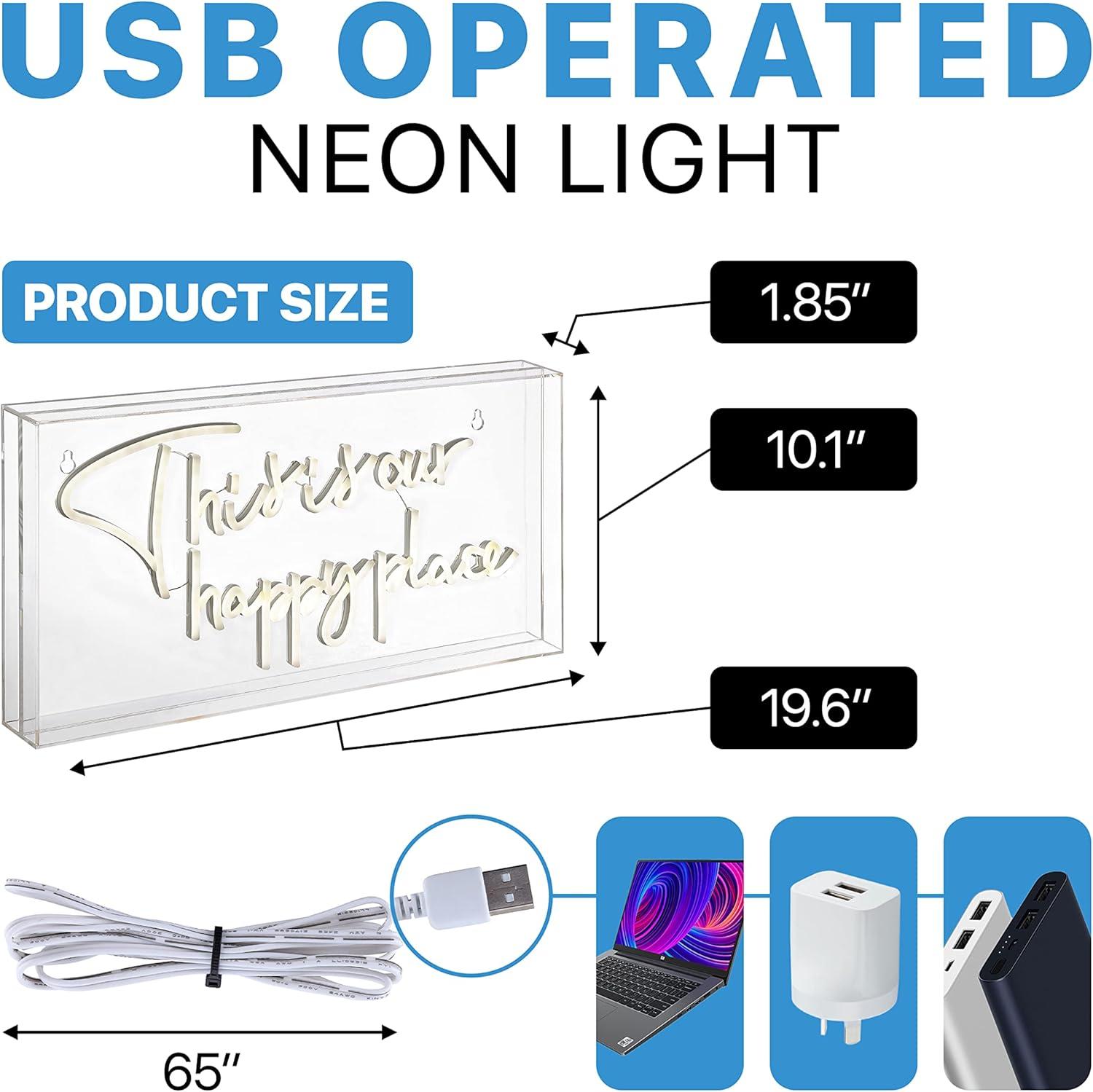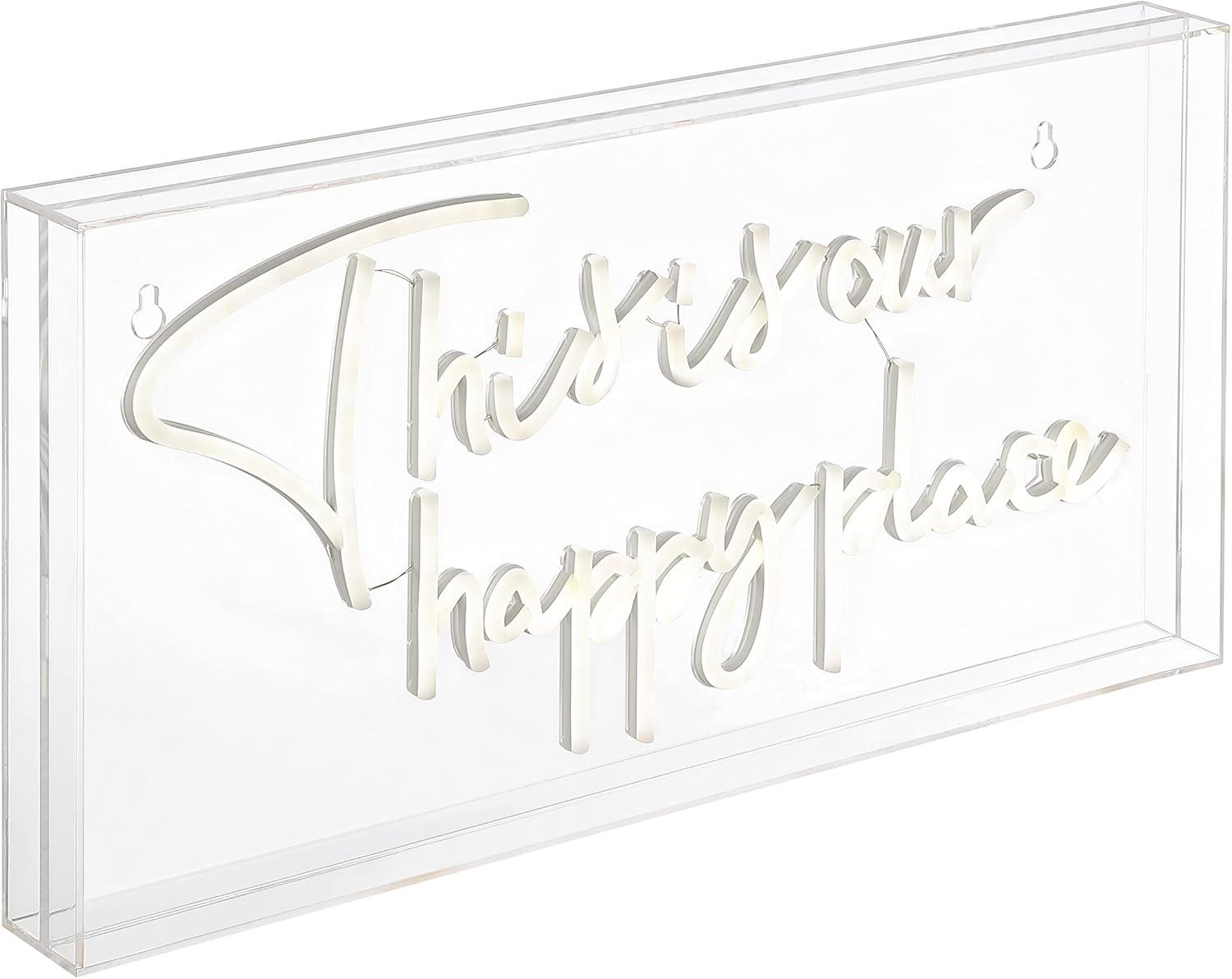 JONATHAN Y NEN1026A This is Your Happy Place 19.6″ X 10.1″ Contemporary Glam Acrylic Box USB Operated LED Neon Light, White