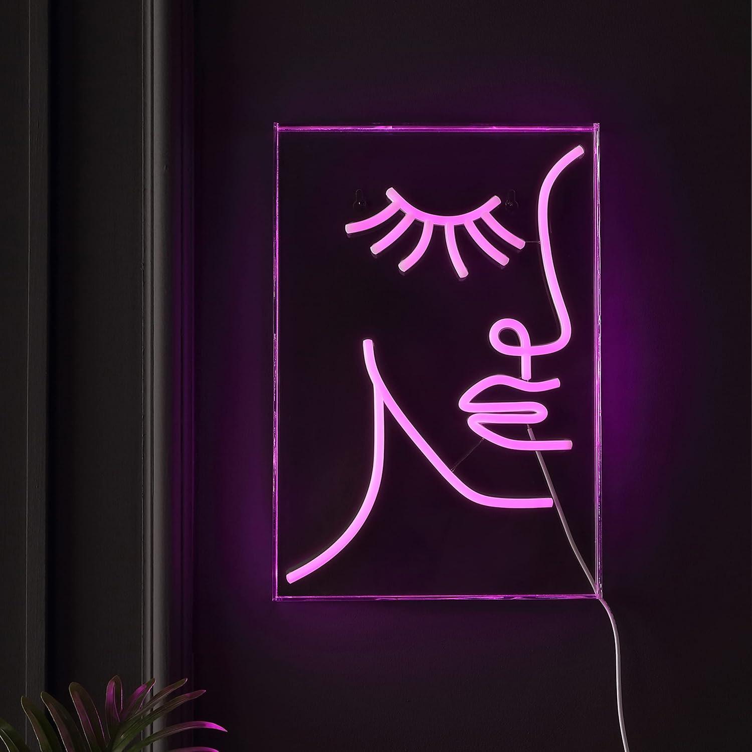 JONATHAN Y NEN1028A Half-Face 10.3″ X 15″ Contemporary Glam Acrylic Box USB Operated LED Neon Light, Pink