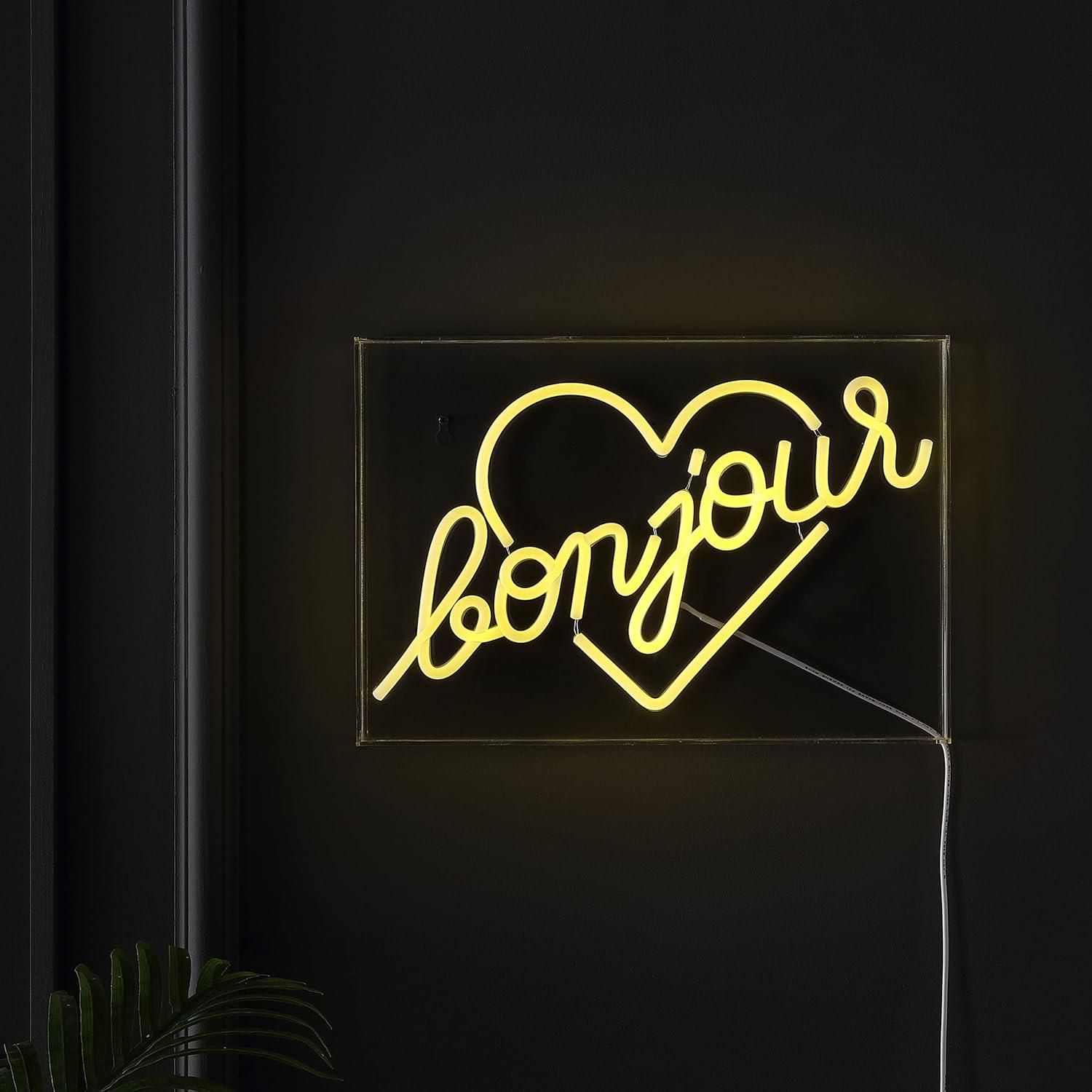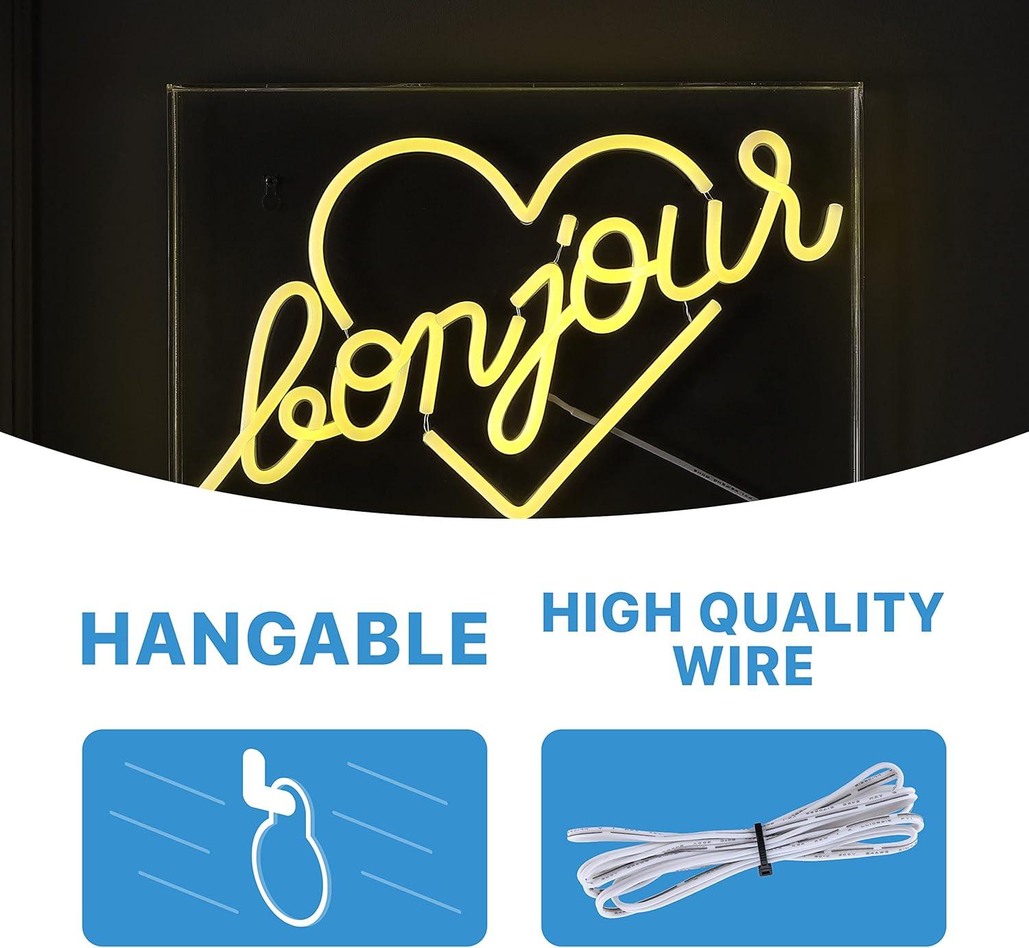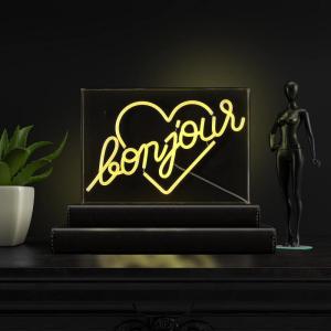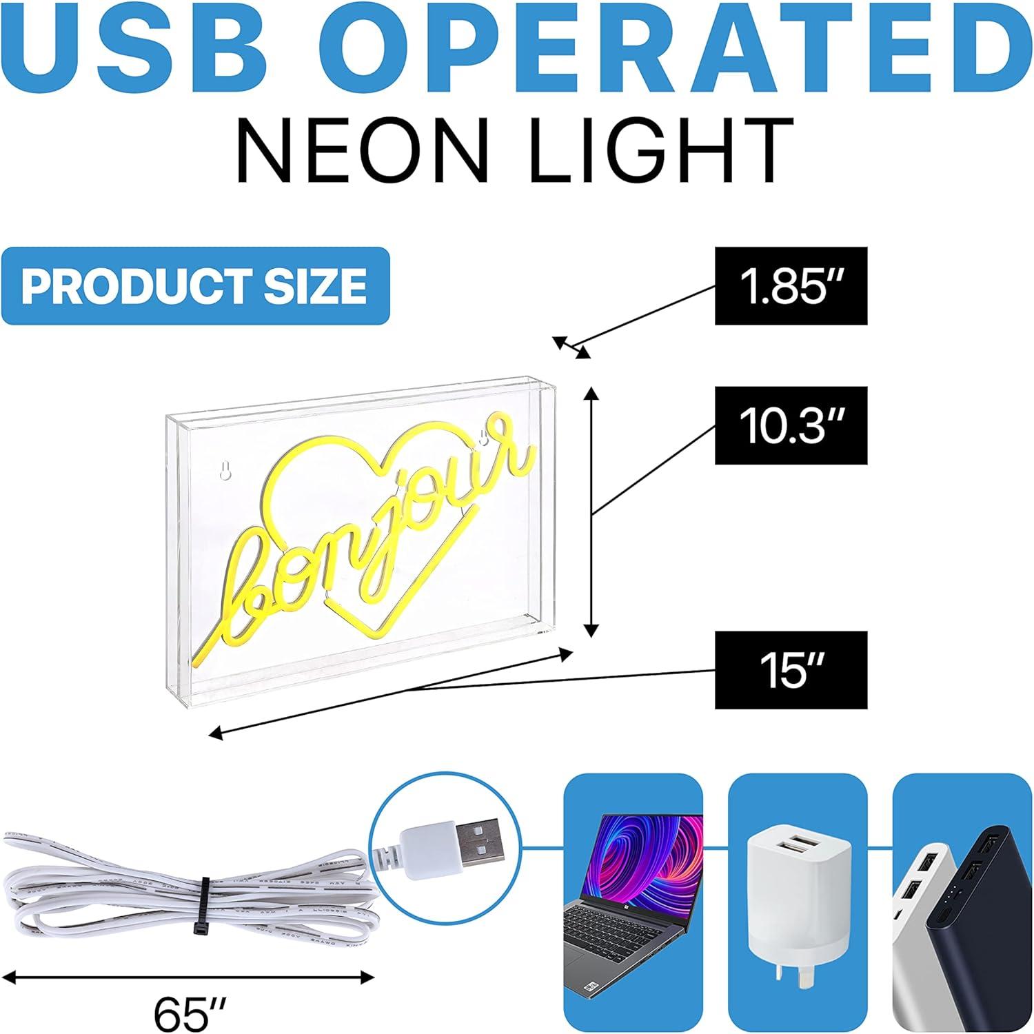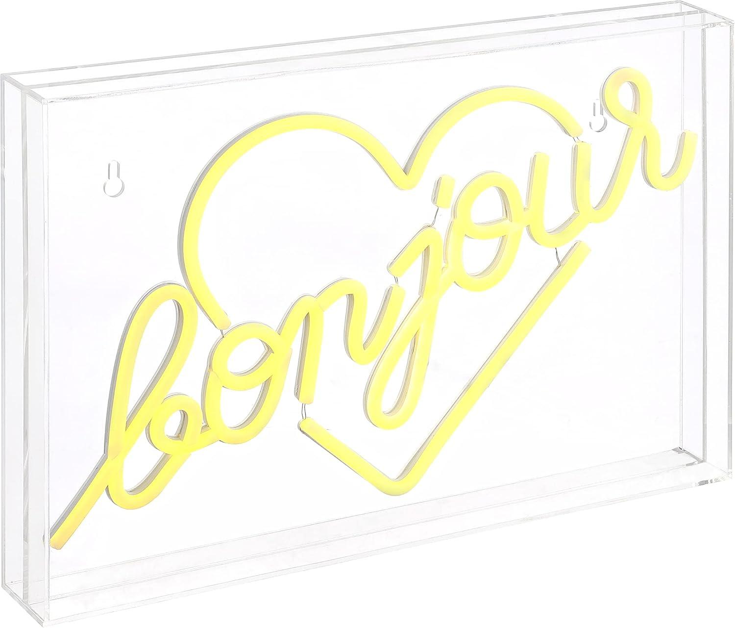 JONATHAN Y NEN1030A Bonjour Heart 15″ X 10.3″ Contemporary Glam Acrylic Box USB Operated LED Neon Light, Yellow