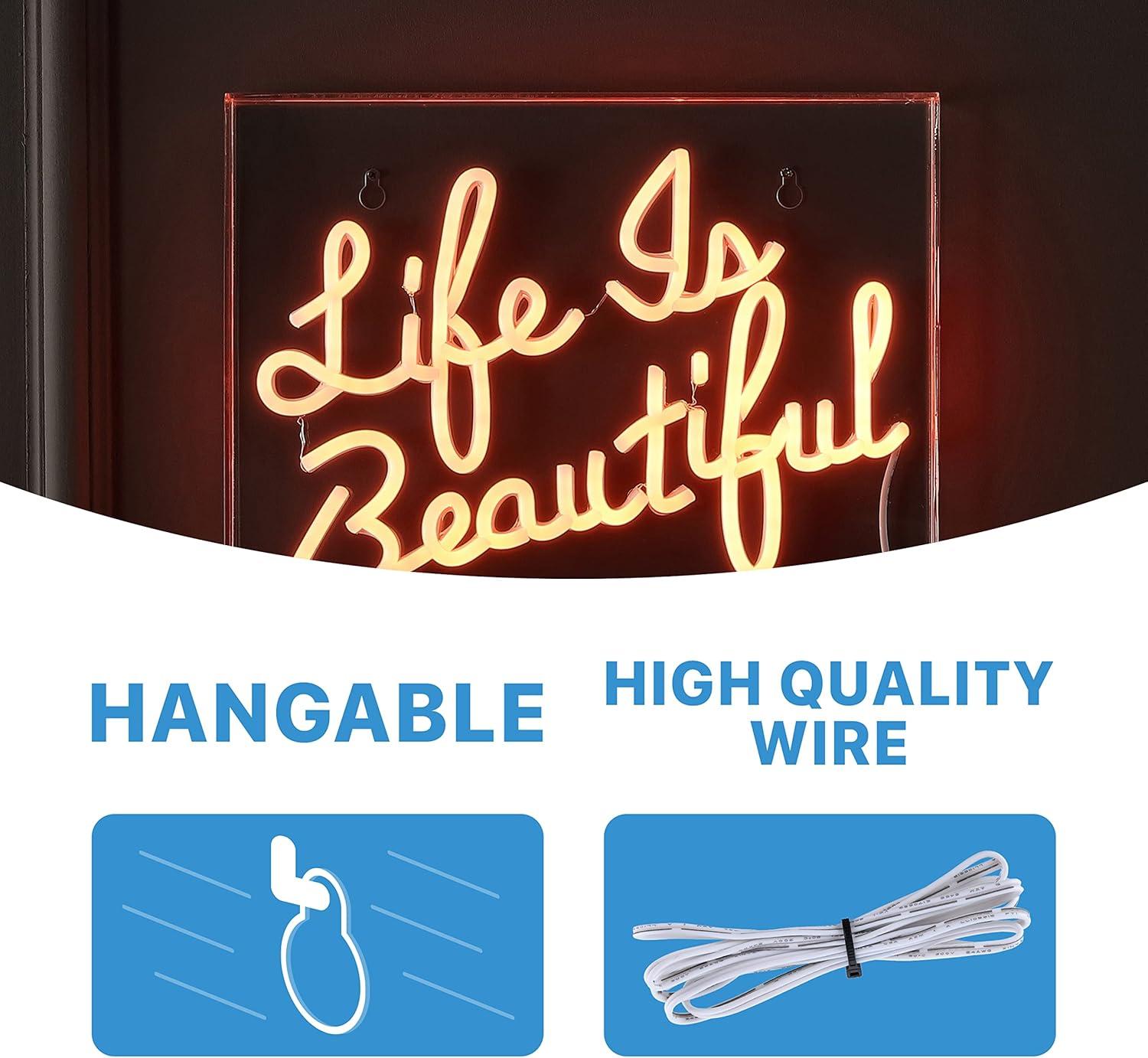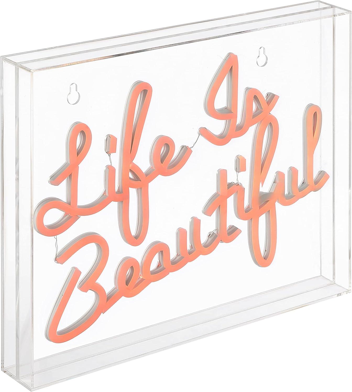 JONATHAN Y NEN1031A Life is Beautiful 13.7″ X 10.9″ Contemporary Glam Acrylic Box USB Operated LED Neon Light, Orange