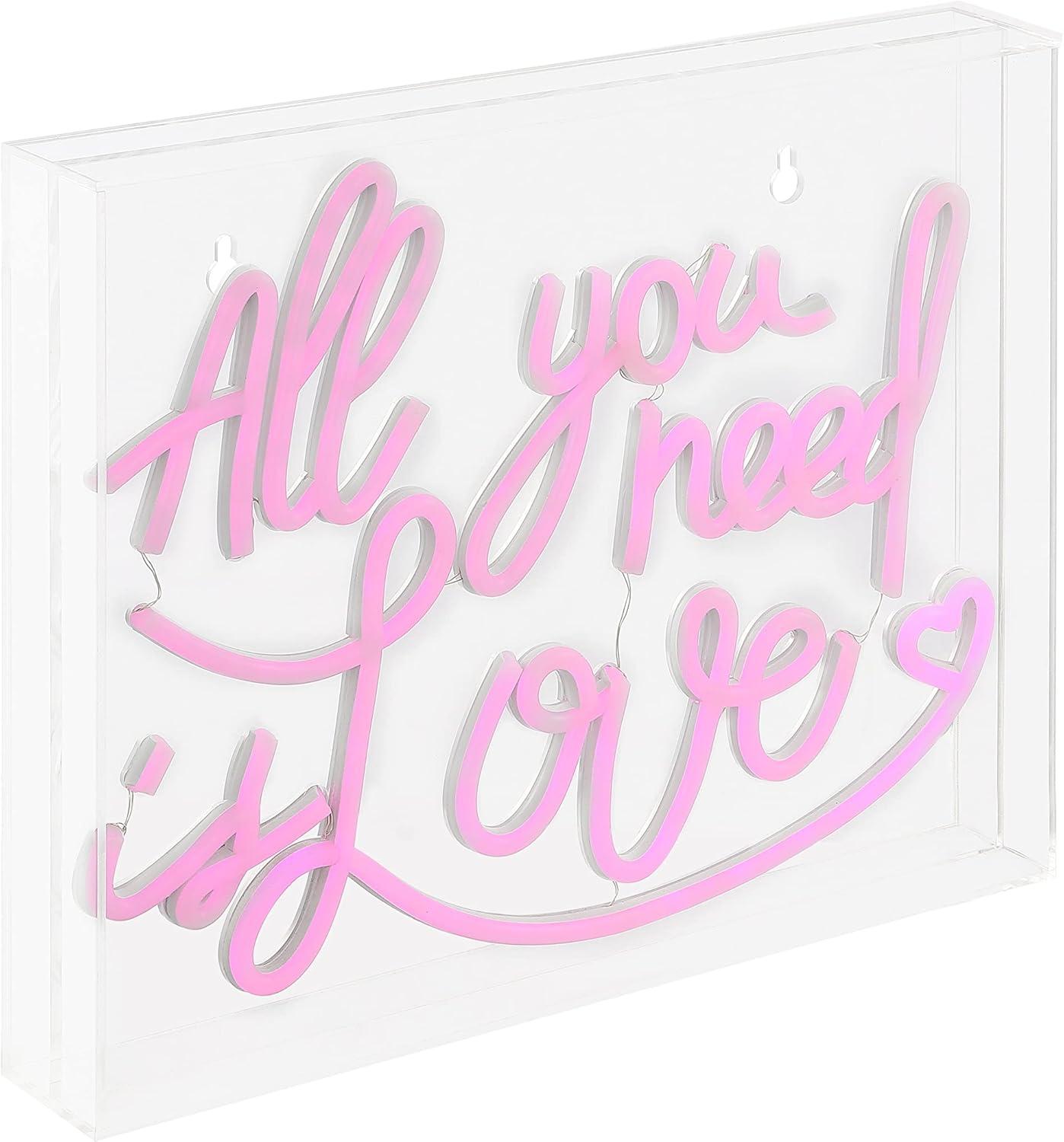 JONATHAN Y NEN1033A All You Need is Love 13.7″ X 10.9″ Contemporary Glam Acrylic Box USB Operated LED Neon Light, Pink