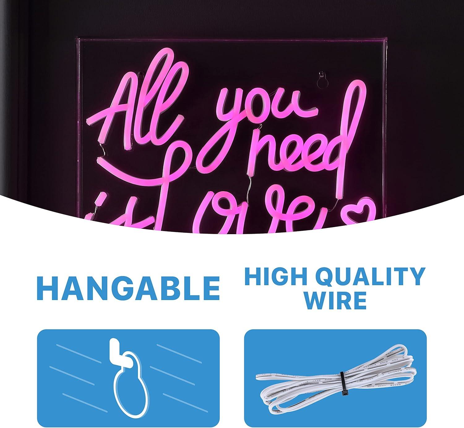 JONATHAN Y NEN1011A All You Need is Love 23.63″ X 11.75″ Contemporary Glam Acrylic Box USB Operated LED Neon Light, Pink