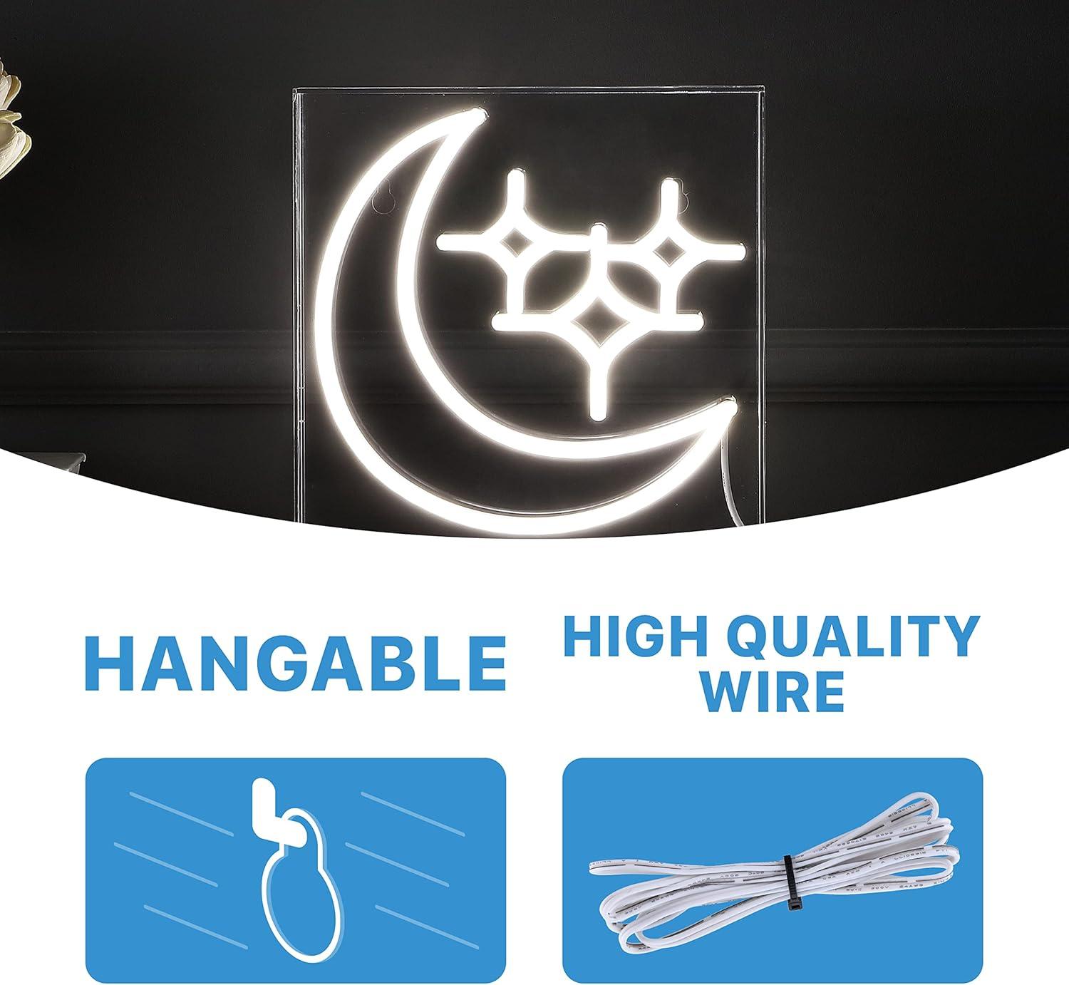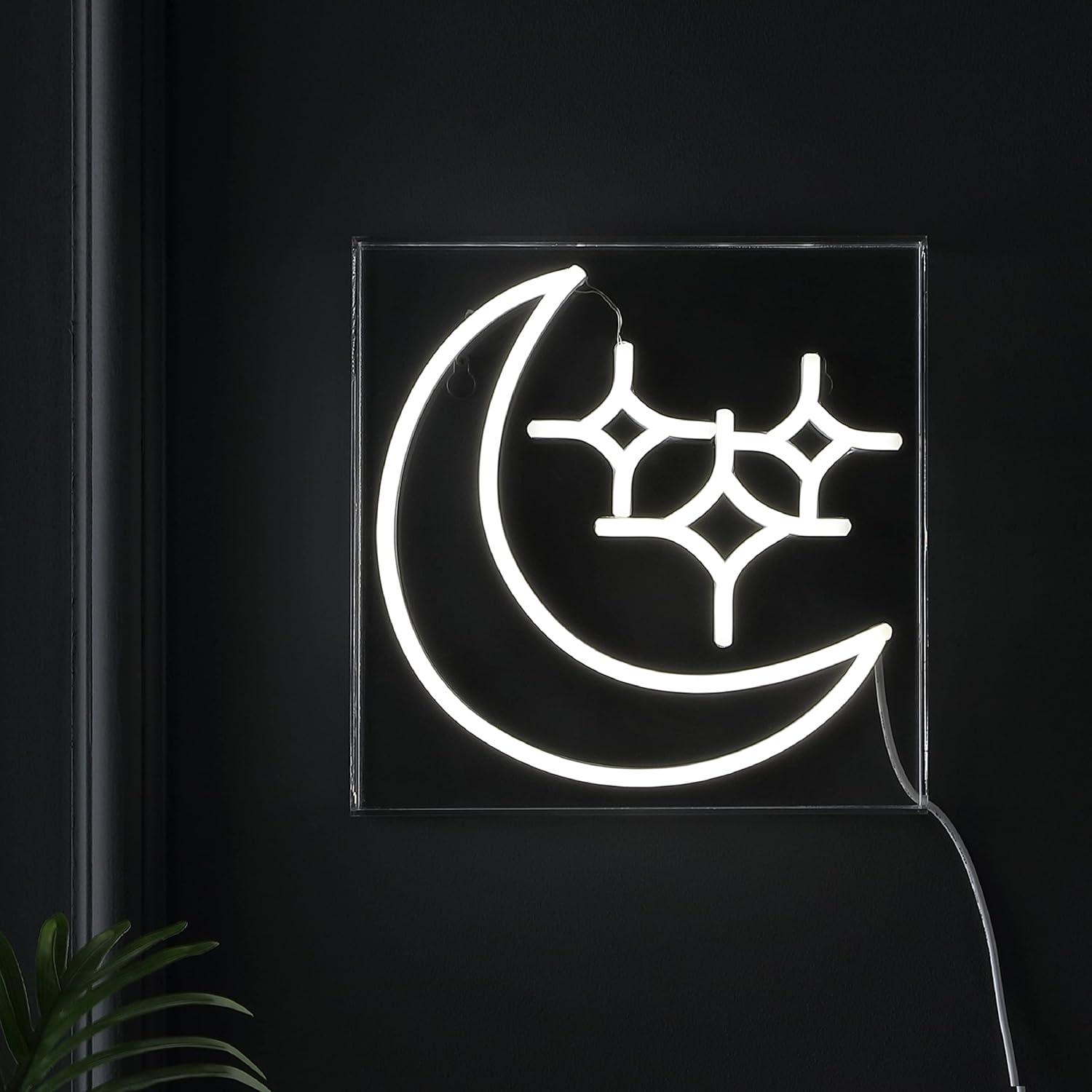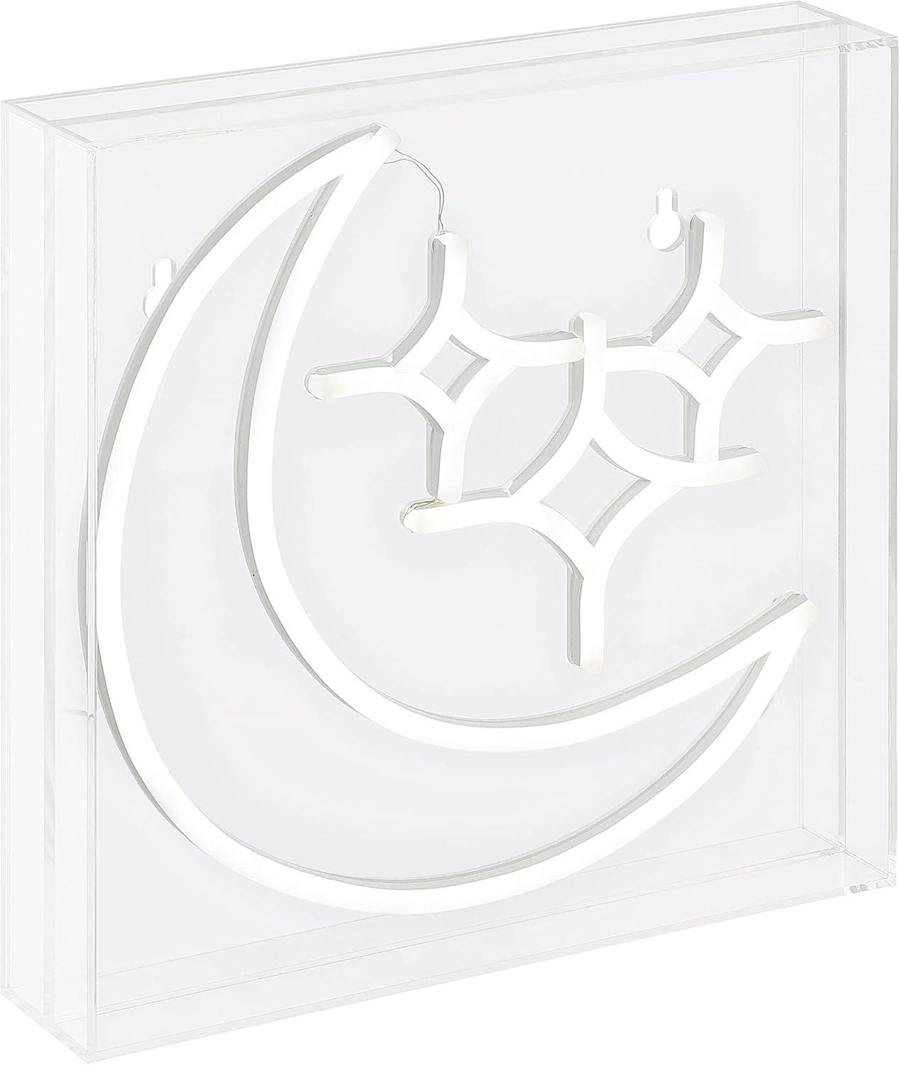 JONATHAN Y NEN1034A Starry Crescent 10″ Square Contemporary Glam Acrylic Box USB Operated LED Neon Light, White