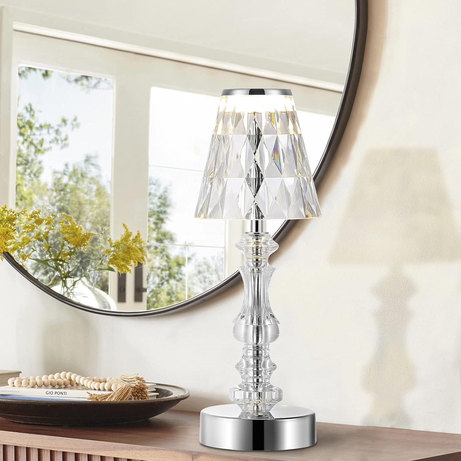 JONATHAN Y JYL7107A Madelyn 11.5″ Bohemian Classic Acrylic Rechargeable Integrated LED Table Lamp Contemporary Bedside Desk Nightstand Lamp for Bedroom Living Room Office, Clear/Chrome
