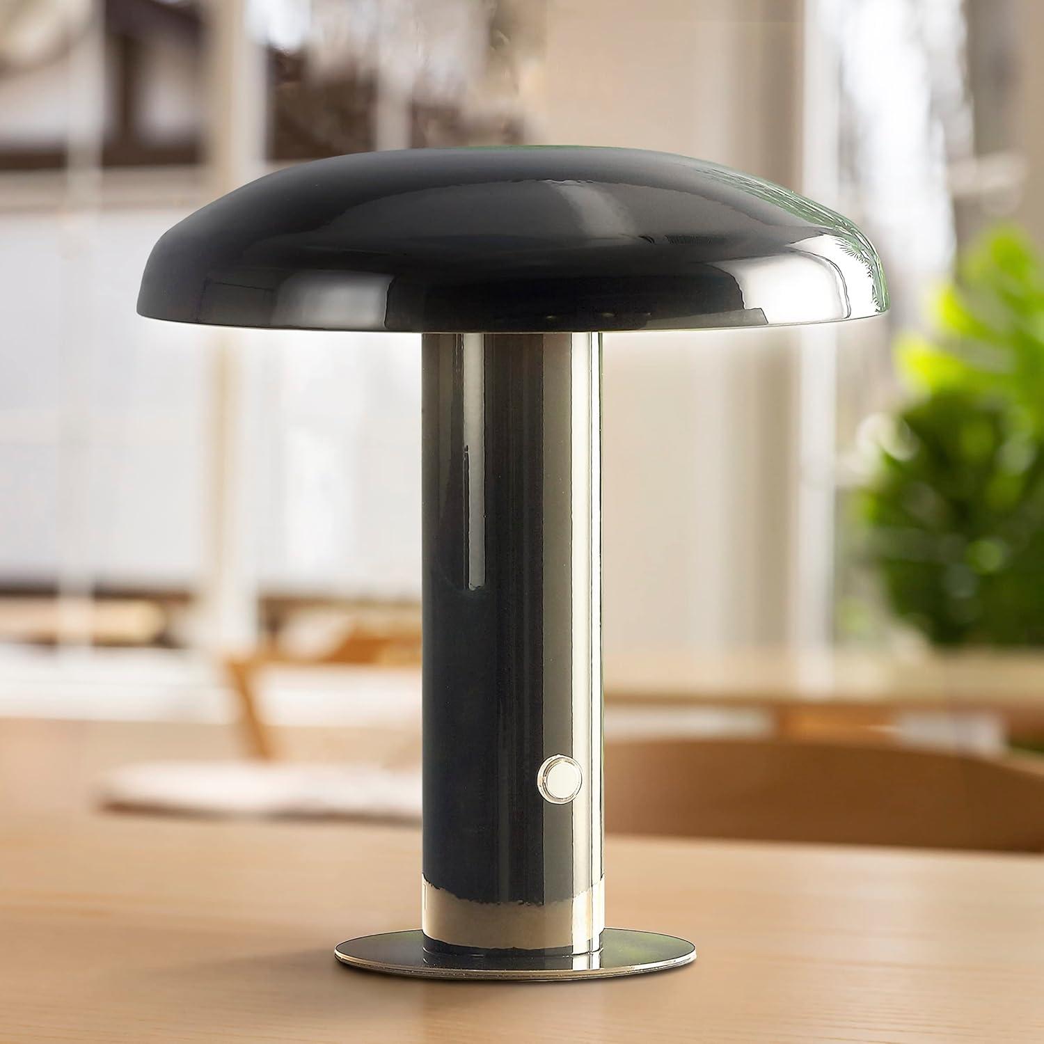 JONATHAN Y JYL7114A Suillius 11″ Contemporary Bohemian Rechargeable/Cordless Portable Iron Integrated LED Mushroom Table Lamp Modern, Coastal Bedside Desk Nightstand Lamp, Black(Black)