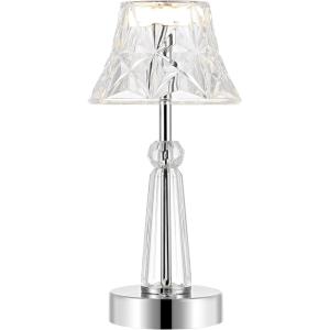 JONATHAN Y JYL7106A Lillian 12.75″ Bohemian Classic Acrylic Rechargeable Integrated LED Table Lamp Contemporary Bedside Desk Nightstand Lamp for Bedroom Living Room Office, Clear/Chrome