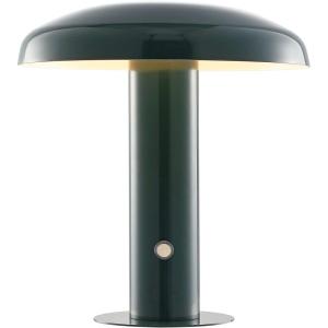 JONATHAN Y JYL7114A Suillius 11″ Contemporary Bohemian Rechargeable/Cordless Portable Iron Integrated LED Mushroom Table Lamp Modern, Coastal Bedside Desk Nightstand Lamp, Black(Forest Green)