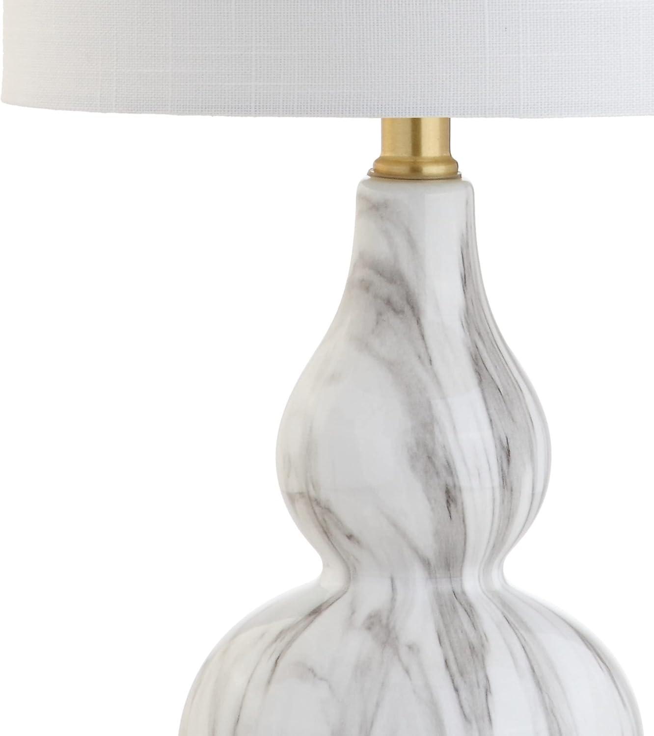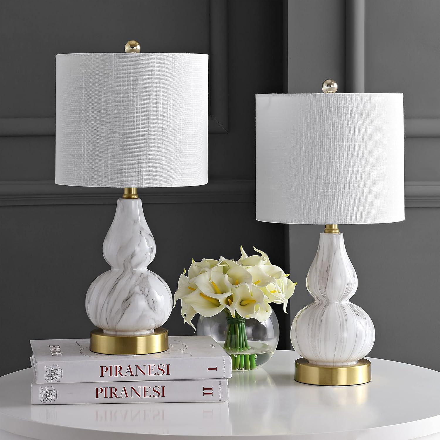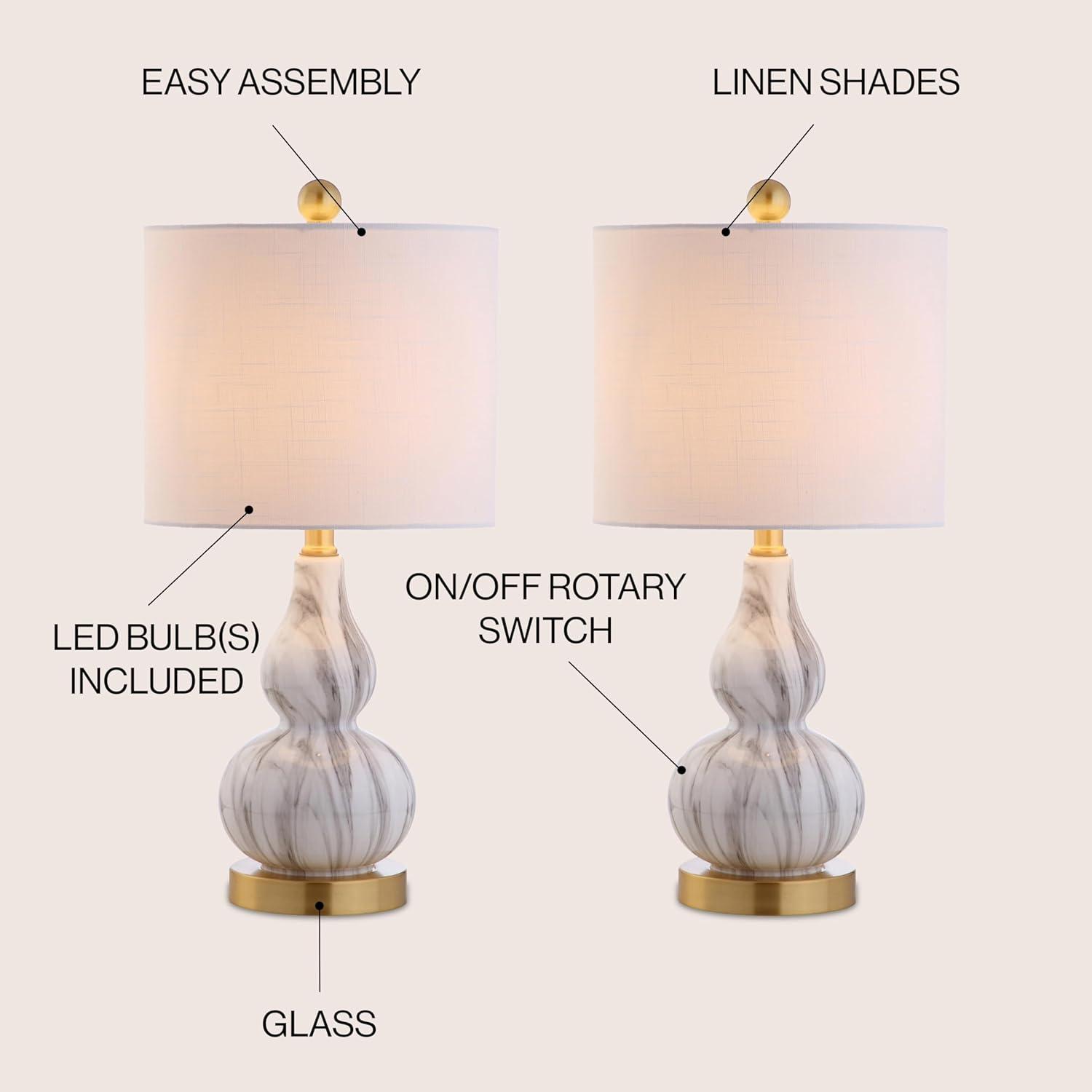 JONATHAN Y JYL1028A Anya 20.5″ Mini Glass LED Table Lamp, Transitional, Glam, Midcentury, Modern, Elegant, Office, Living Room, Family Room, Dining Room, Bedroom, Hallway, Foyer, Gray(Black / White)
