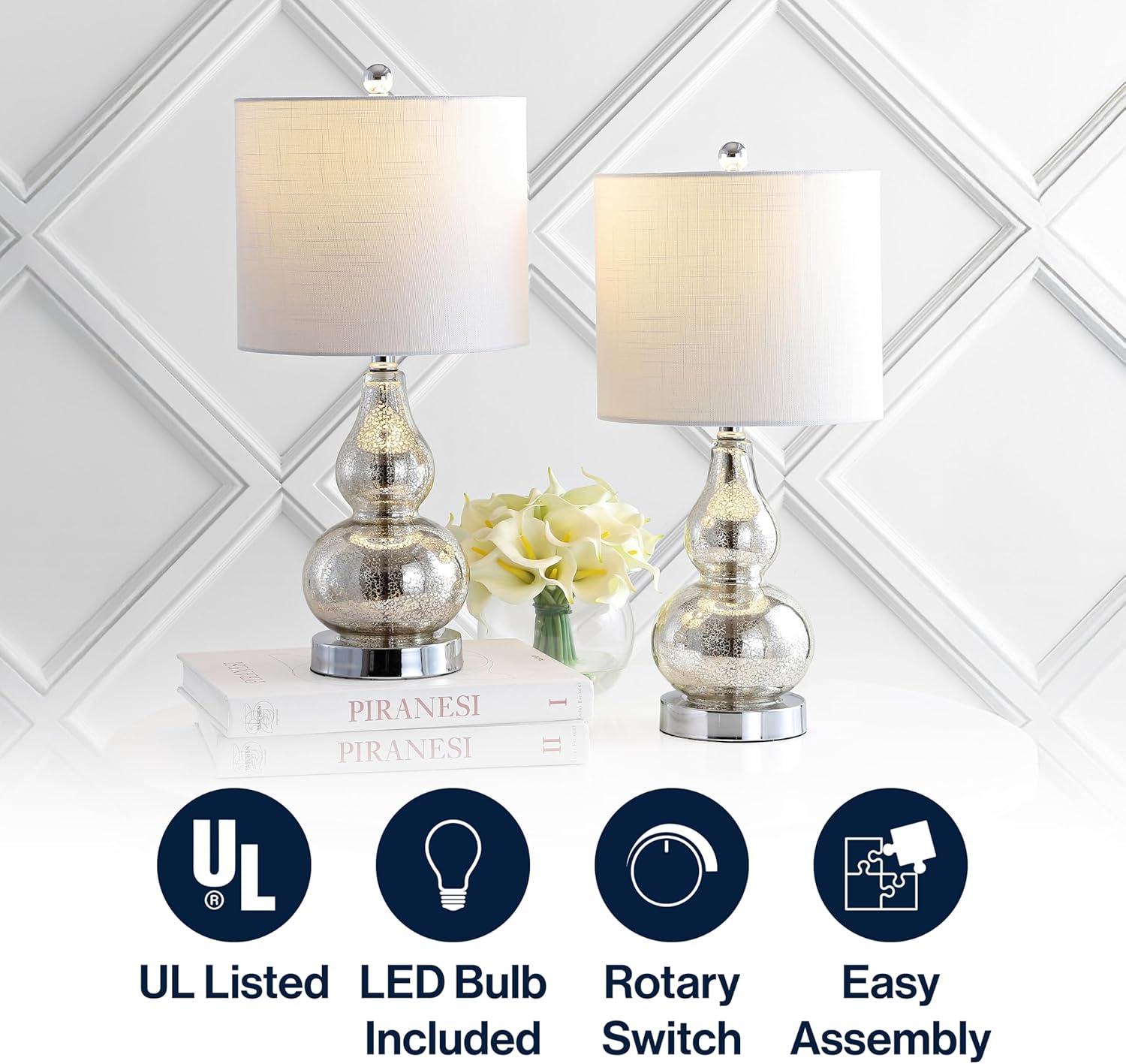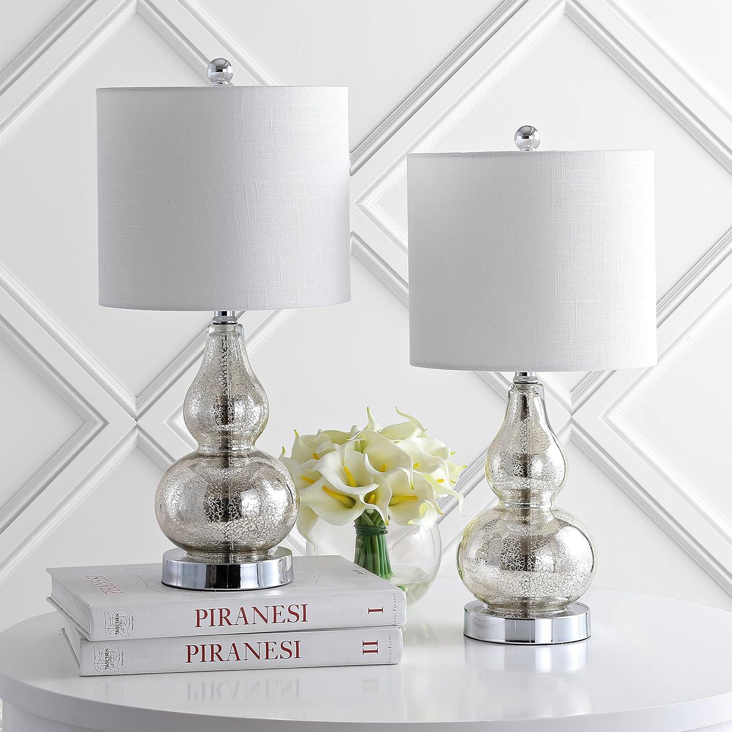 JONATHAN Y JYL1028C-SET2 Anya 20.5″ Mini Glass Lamp(Set of 2) Transitional,Glam,Midcentury for Bedroom, Living Room, Office, College Dorm, Coffee Table, Bookcase, Silver, 2 Piece(Mercury Silver)