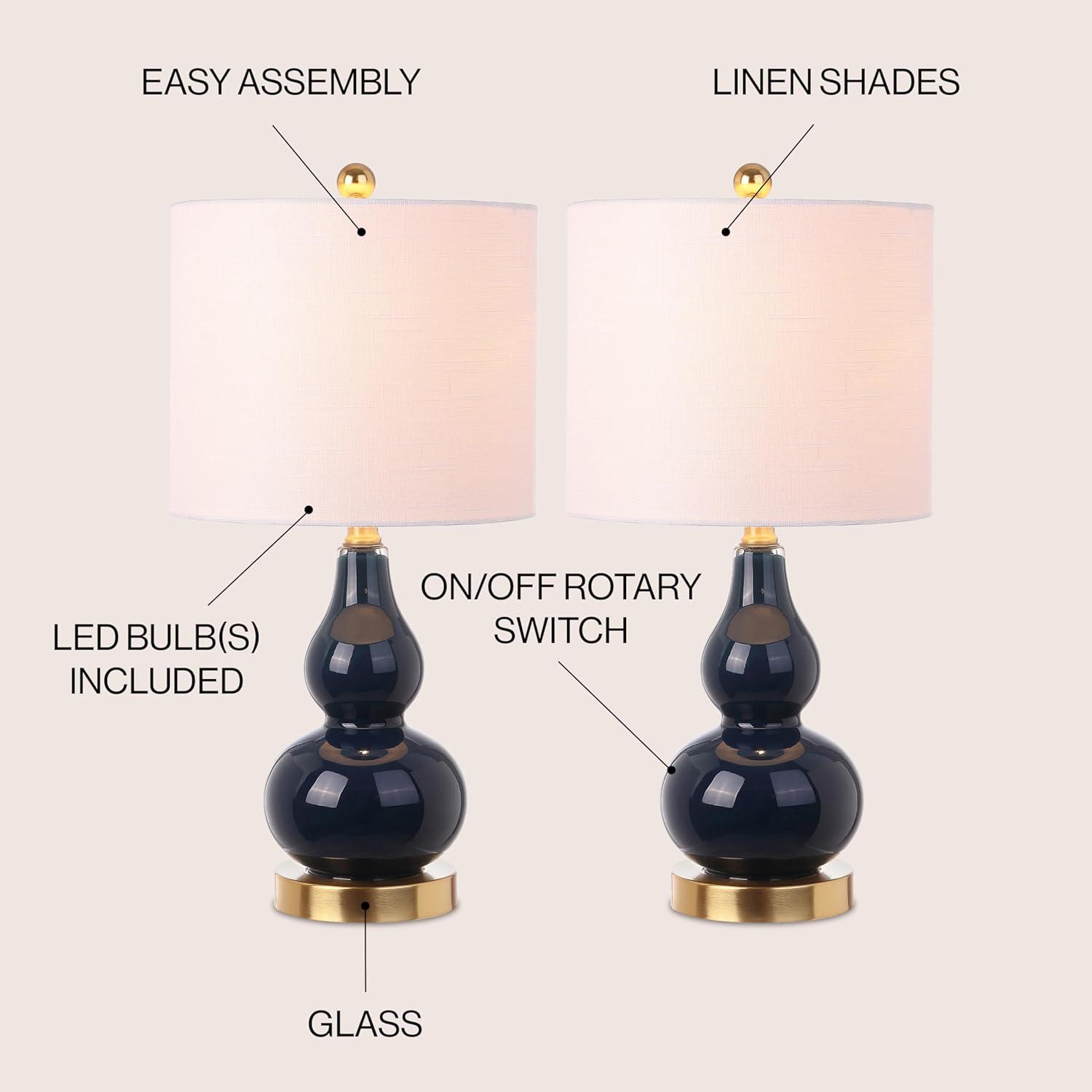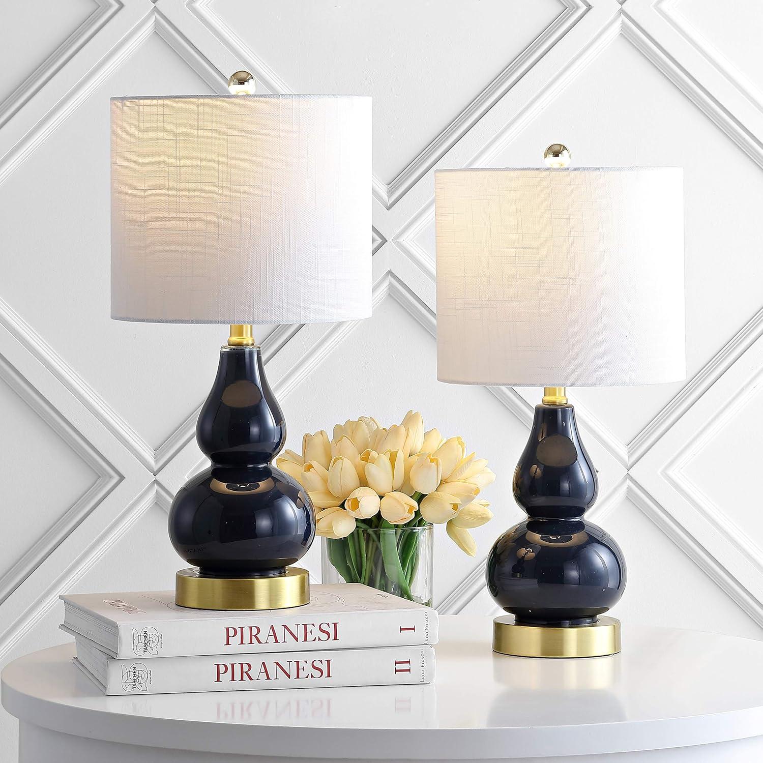 JONATHAN Y JYL1028A Anya 20.5″ Mini Glass LED Table Lamp, Transitional, Glam, Midcentury, Modern, Elegant, Office, Living Room, Family Room, Dining Room, Bedroom, Hallway, Foyer, Gray(Navy)