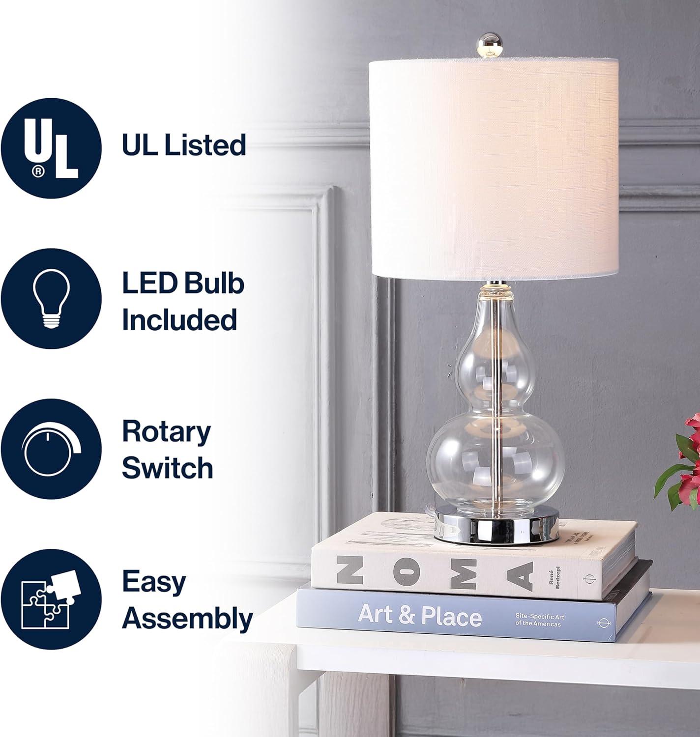 JONATHAN Y JYL1028A Anya 20.5″ Mini Glass LED Table Lamp, Transitional, Glam, Midcentury, Modern, Elegant, Office, Living Room, Family Room, Dining Room, Bedroom, Hallway, Foyer, Gray(Clear)