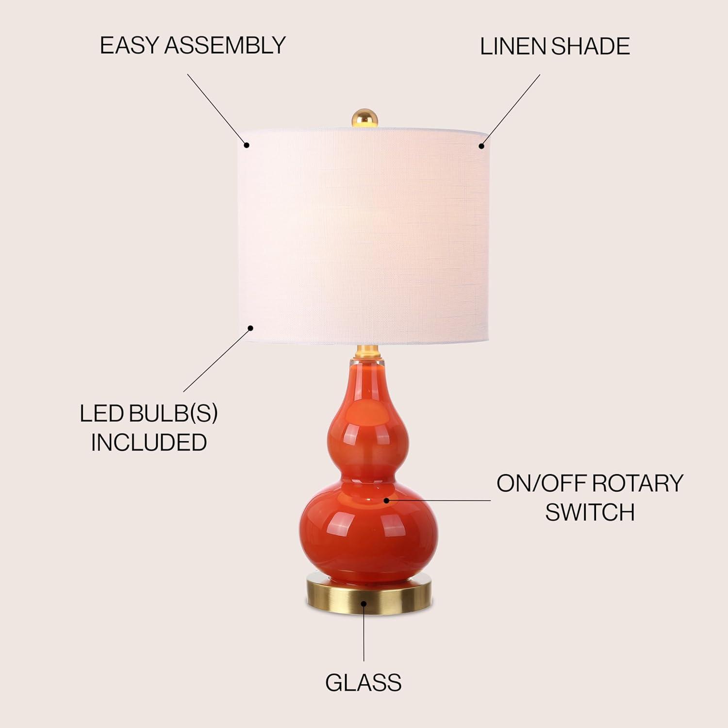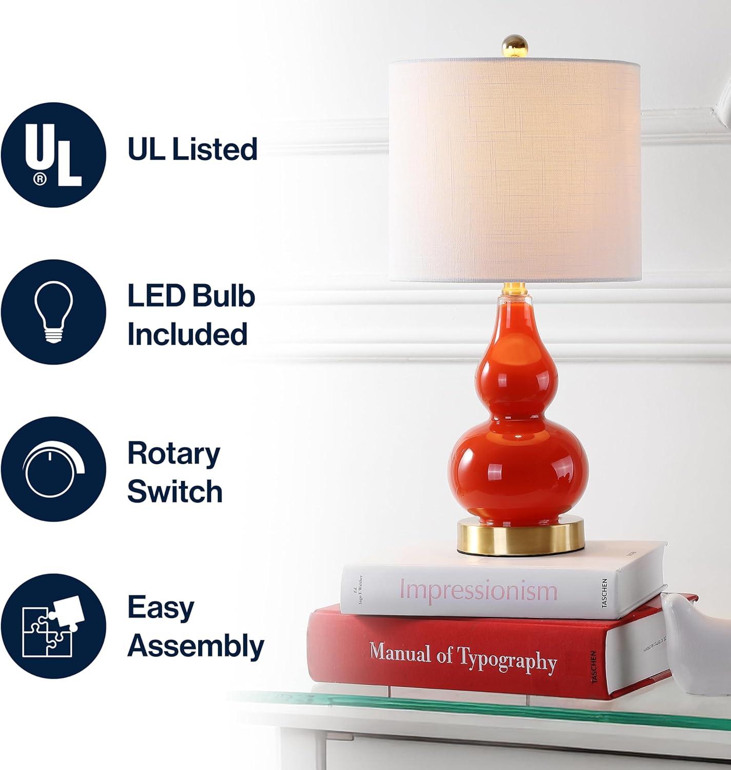 JONATHAN Y JYL1028A Anya 20.5″ Mini Glass LED Table Lamp, Transitional, Glam, Midcentury, Modern, Elegant, Office, Living Room, Family Room, Dining Room, Bedroom, Hallway, Foyer, Gray(Sunset Orange)