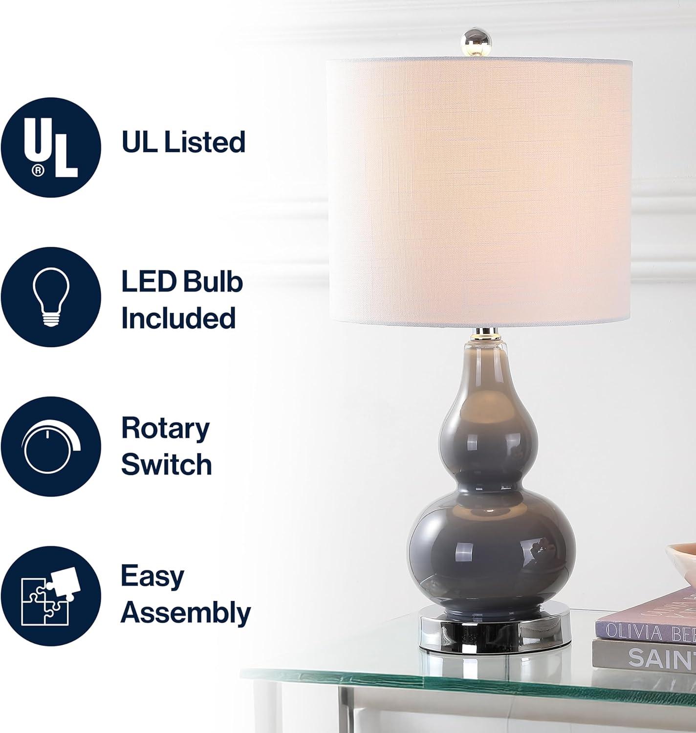 JONATHAN Y JYL1028A Anya 20.5″ Mini Glass LED Table Lamp, Transitional, Glam, Midcentury, Modern, Elegant, Office, Living Room, Family Room, Dining Room, Bedroom, Hallway, Foyer, Gray(Gray)