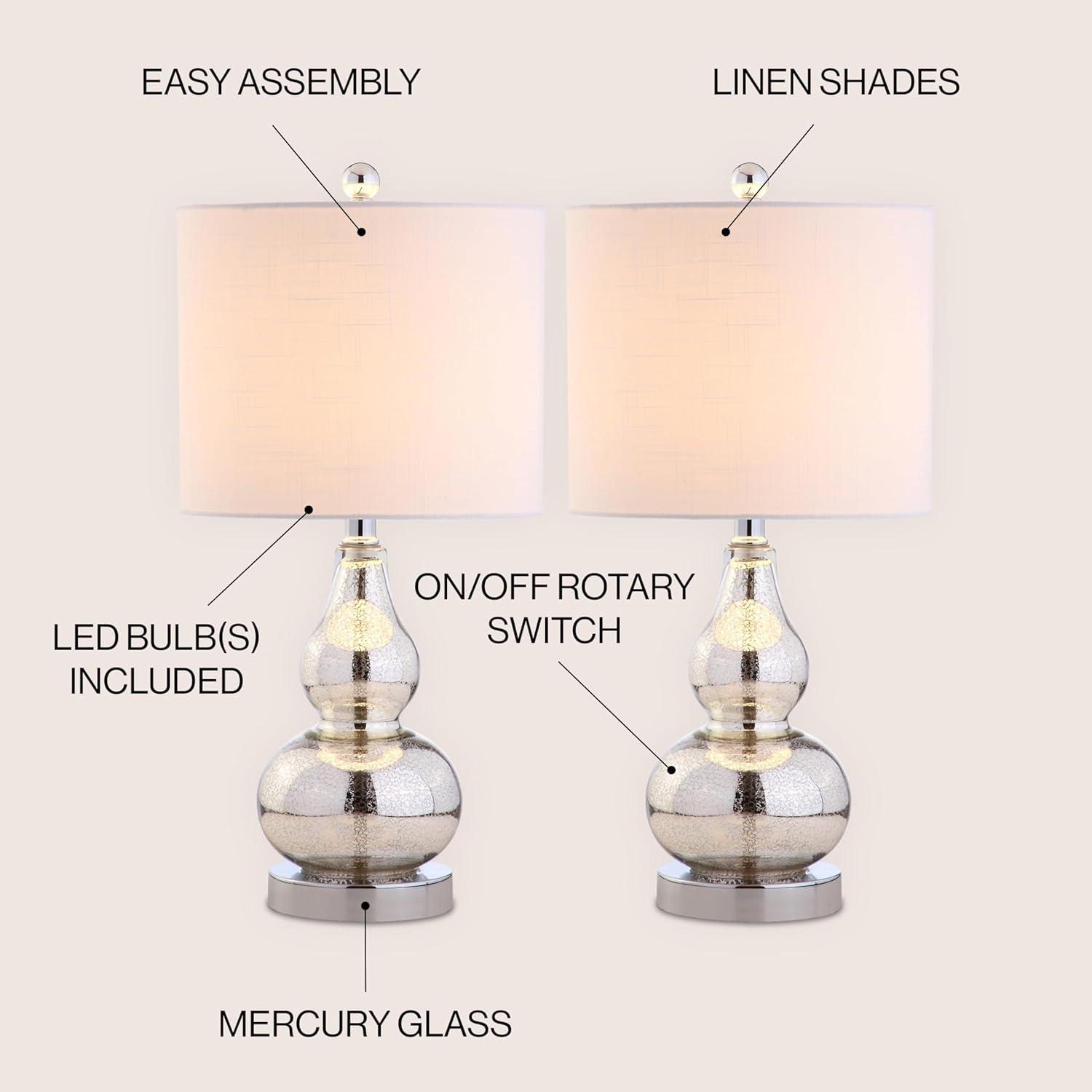 JONATHAN Y JYL1028A Anya 20.5″ Mini Glass LED Table Lamp, Transitional, Glam, Midcentury, Modern, Elegant, Office, Living Room, Family Room, Dining Room, Bedroom, Hallway, Foyer, Gray(Mercury Silver)