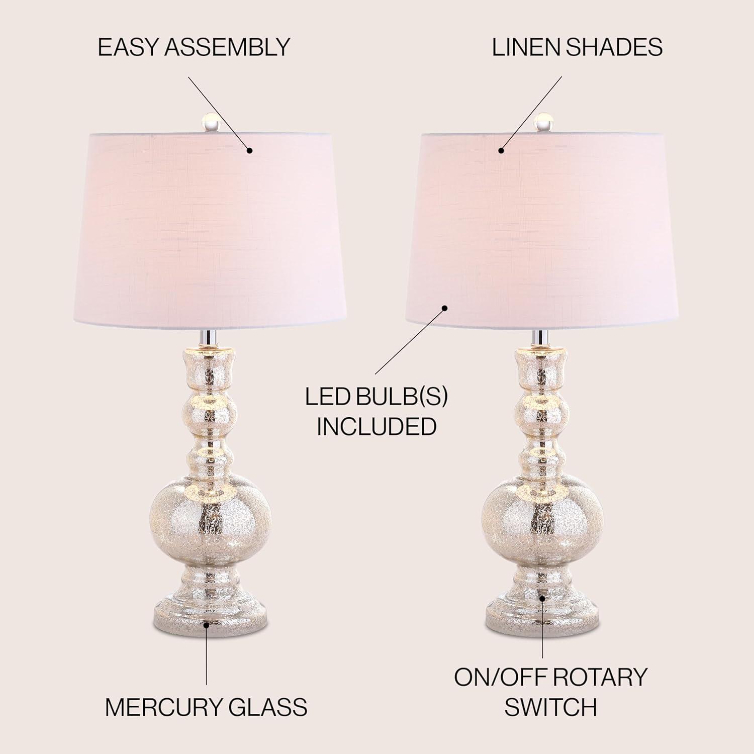 JONATHAN Y JYL1061D-SET2 Set of 2 Table Lamps Genie 28.5″ Glass LED Table Lamp Contemporary Transitional Bedside Desk Nightstand Lamp for Bedroom Living Room Office College Bookcase, Mercury Silver(Mercury Silver)