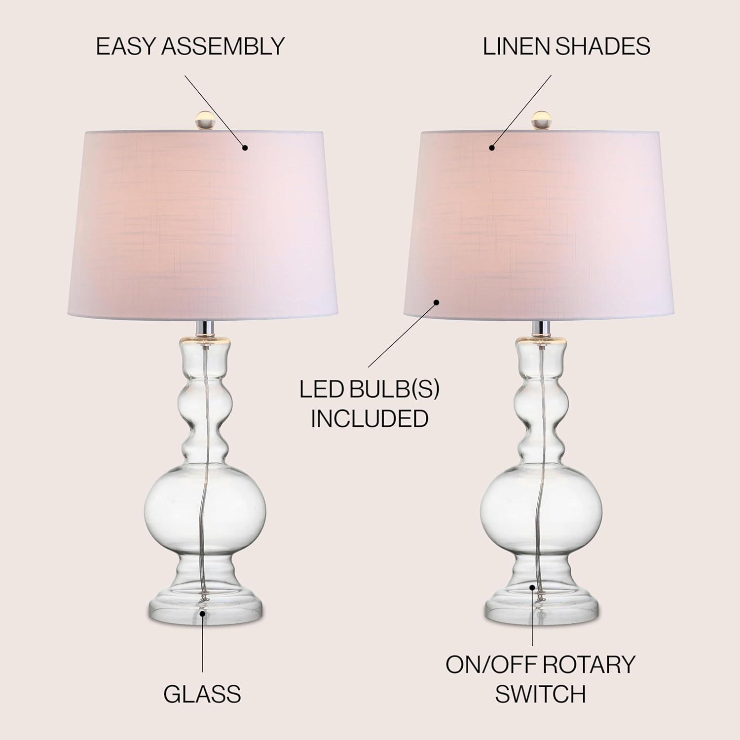 - Don't miss out on our limited-time offer: buy JONATHAN Y JYL1061D-SET2 Set of 2 Table Lamps Genie 28.5" Glass LED Table Lamp Contemporary Transitional Bedside Desk Nightstand Lamp for Bedroom Living Room Office College Bookcase, Mercury Silver(Clear), get {accessory} 50% off!
