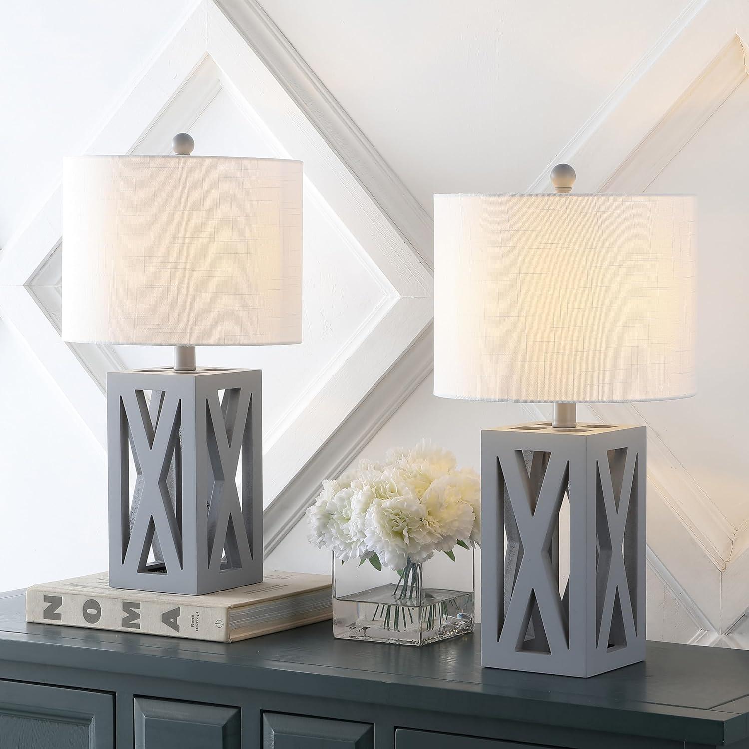 JONATHAN Y JYL1028C-SET2 Anya 20.5″ Mini Glass Lamp(Set of 2) Transitional,Glam,Midcentury for Bedroom, Living Room, Office, College Dorm, Coffee Table, Bookcase, Silver, 2 Piece(Gray)