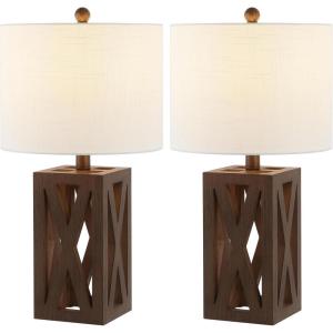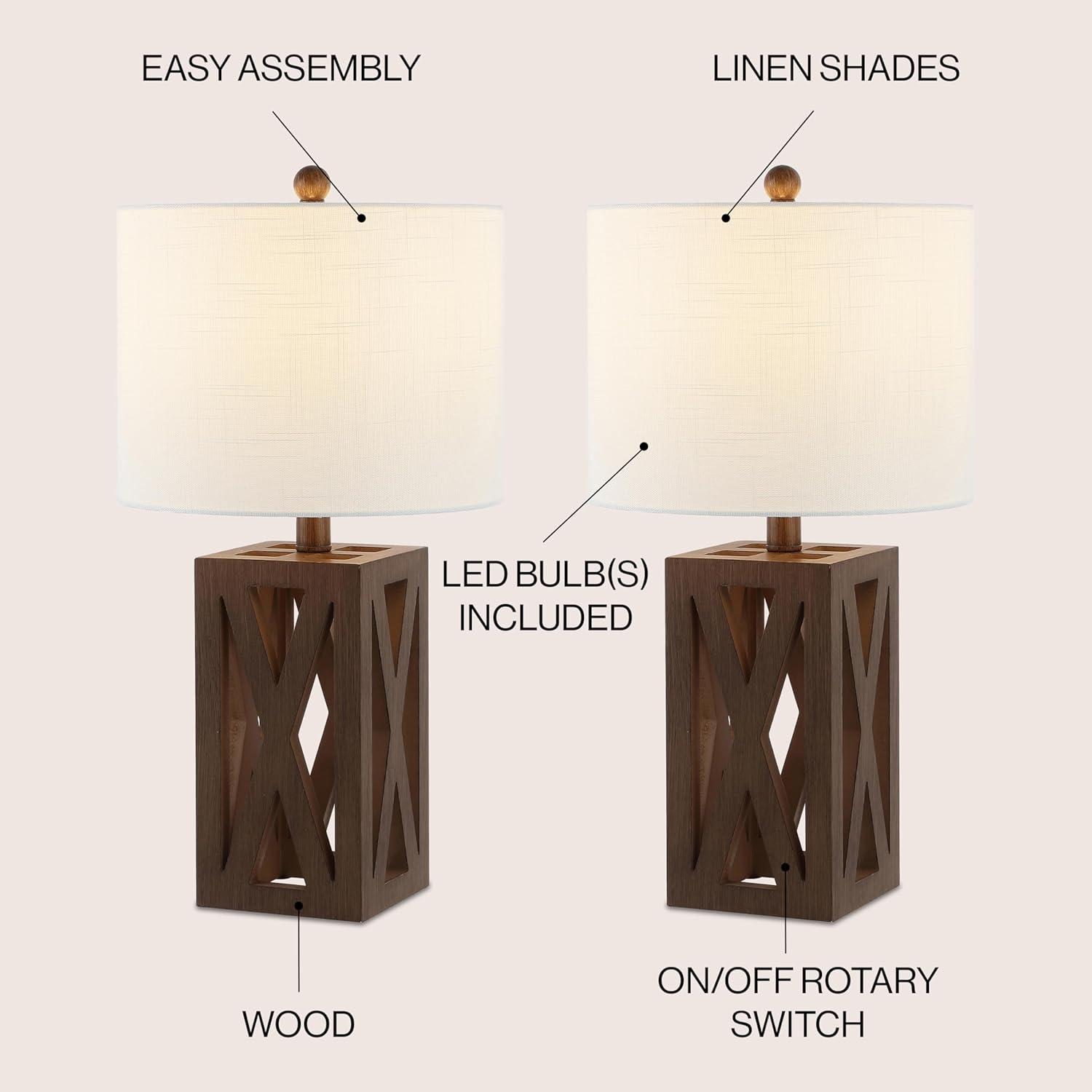 JONATHAN Y JYL1062A Stewart 21.5″ Wood LED Table Lamp Industrial French Country Rustic Bedside Desk Nightstand Lamp for Bedroom Living Room Office College Bookcase LED Bulb Included, Brown(Brown)
