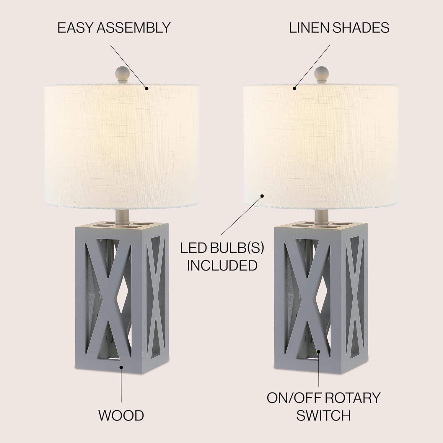 JONATHAN Y JYL1062A Stewart 21.5″ Wood LED Table Lamp Industrial French Country Rustic Bedside Desk Nightstand Lamp for Bedroom Living Room Office College Bookcase LED Bulb Included, Brown(Gray)