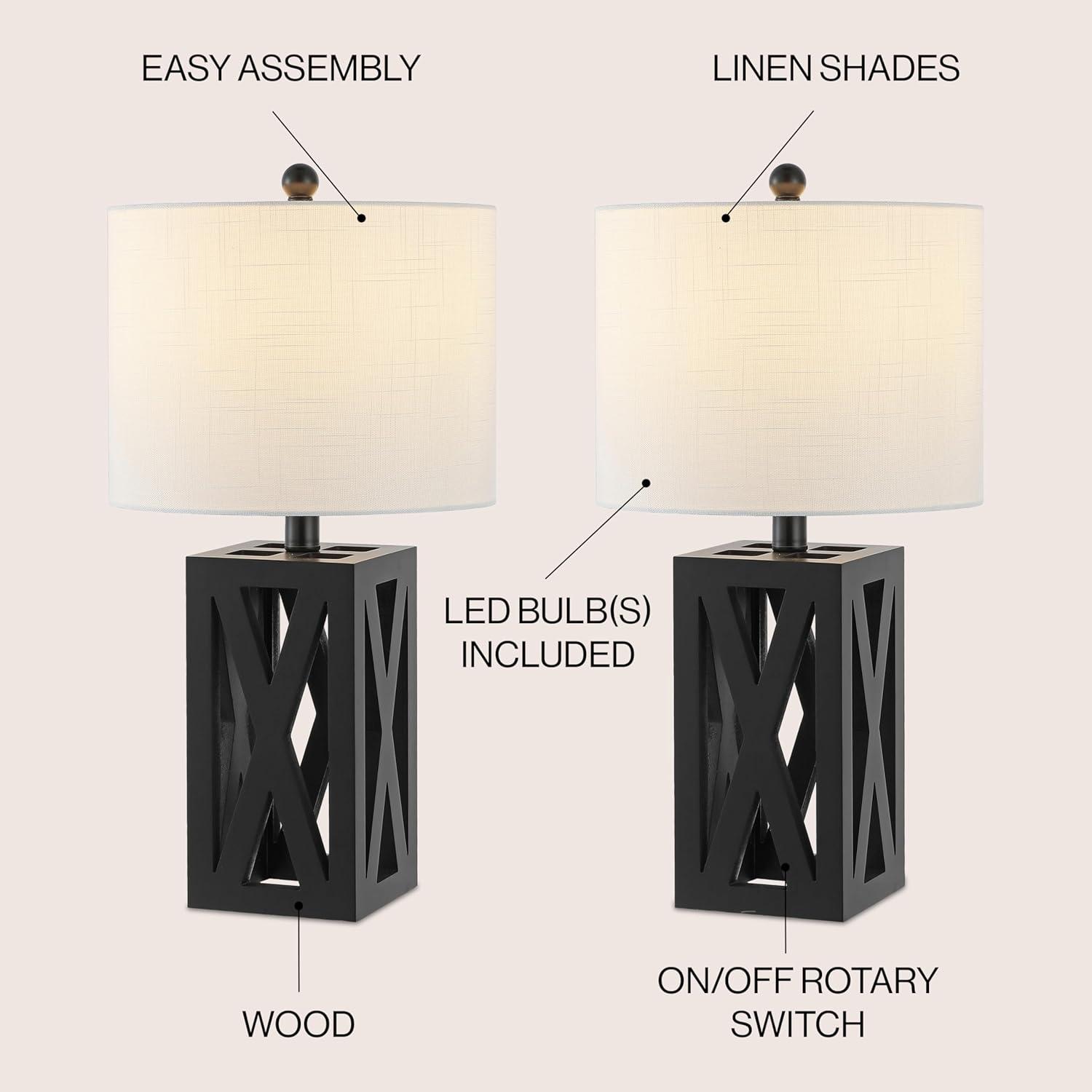 JONATHAN Y JYL1062A Stewart 21.5″ Wood LED Table Lamp Industrial French Country Rustic Bedside Desk Nightstand Lamp for Bedroom Living Room Office College Bookcase LED Bulb Included, Brown(Black)
